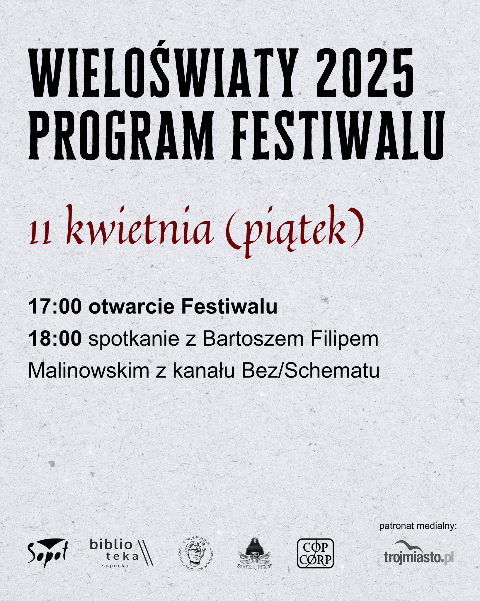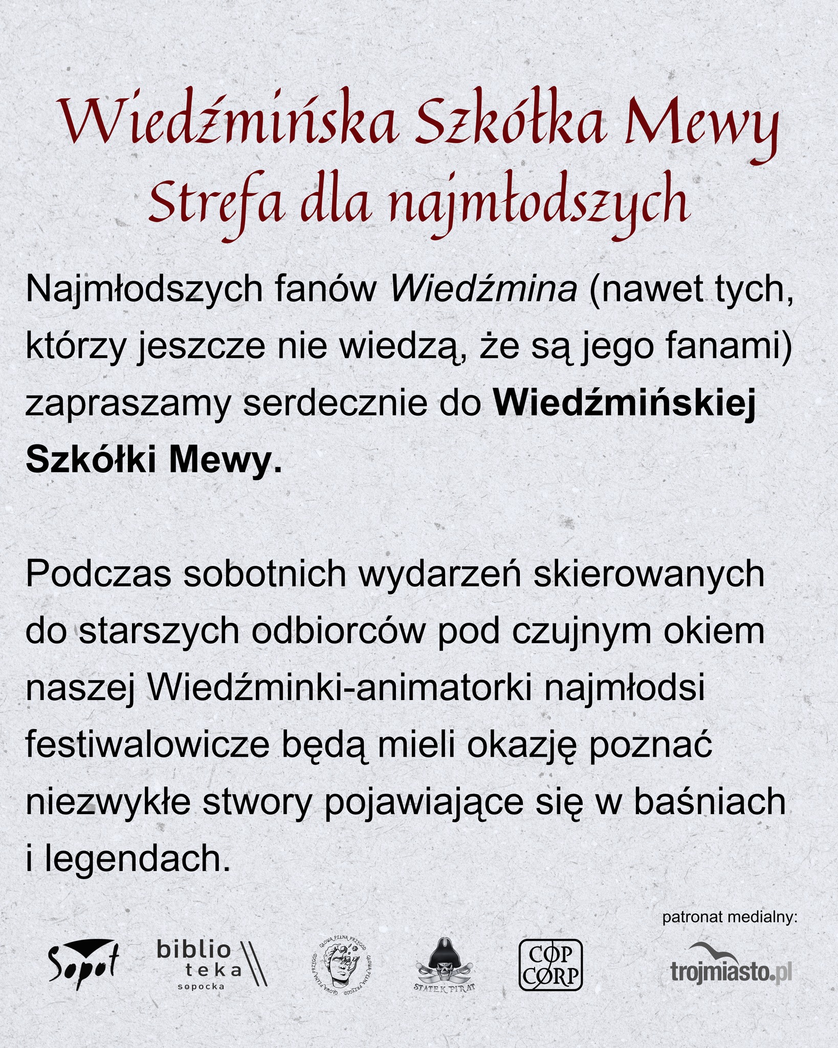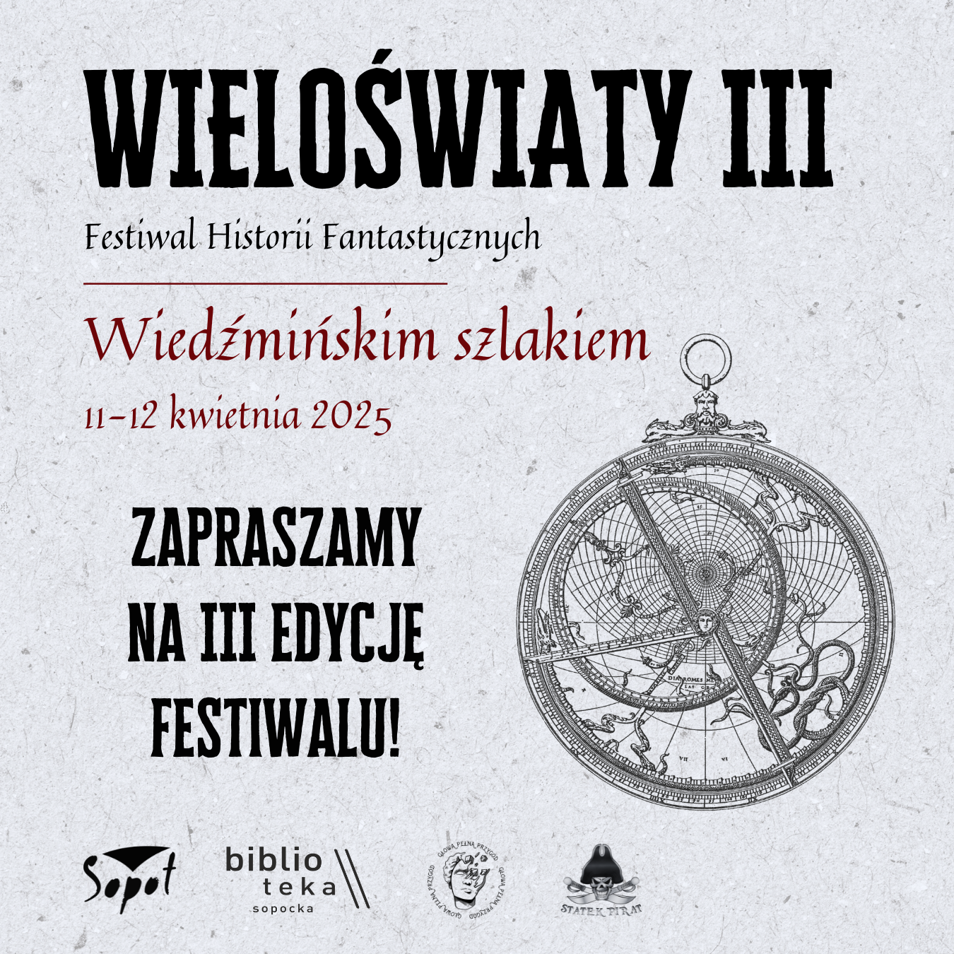 11 i 12 kwietnia w Bibliotece Sopockiej, organizatorzy III Edycji Festiwalu Historii Fantastycznych Wieloświaty chcą was zaprosić do mrocznego, cynicznego świata Wiedźmina. W ramach zaplanowanych wydarzeń będziecie mieli okazję nie tylko posłuchać i podyskutować o wpływie tego uniwersum na obecny stan polskiej fantastyki ale także dostąpić wrażeń wcześniej niespotykanych. Z tego właśnie powodu, poza klasycznymi prelekcjami i spotkaniem autorskim ze znawcą współczesnej popkultury, twórcą podcastu „Bez/Schematu” Bartoszem Filipem Malinowskim organizatorzy zaproszą was do wysłuchania odczytu fragmentów „Krwi Elfów” w wykonaniu Agnieszki Kunikowskiej (aktorki głosowej dubbingującej Triss Merigold w grach „Wiedźmin”) i Krzysztofa Kowalskiego (aktora Teatru Muzycznego w Gdyni, odtwórcy roli Geralta). Na zwieńczenie Festiwalu weźmiecie udział również w spotkaniu dotyczącym nie książki, lecz scenariusza. O trudach, wyzwaniach i niewątpliwej przyjemności płynącej z adaptacji książki na język gier komputerowych opowie Marcin Blacha, pisarz i scenarzysta, osoba odpowiedzialna za stworzenie m.in. scenariuszy do gier Wiedźmin. Poza tym czeka na was cała moc innych atrakcji – od klimatycznej muzyki (ponoć uznani grajkowie, uczniowie samego Jaskra, mają uświetnić wydarzenie swoją obecnością), przez quiz sprawdzający waszą wiedzę o uniwersum po liczne stoiska wystawców (dla tych, którzy nie chcą wrócić do domu z pustymi rękami).