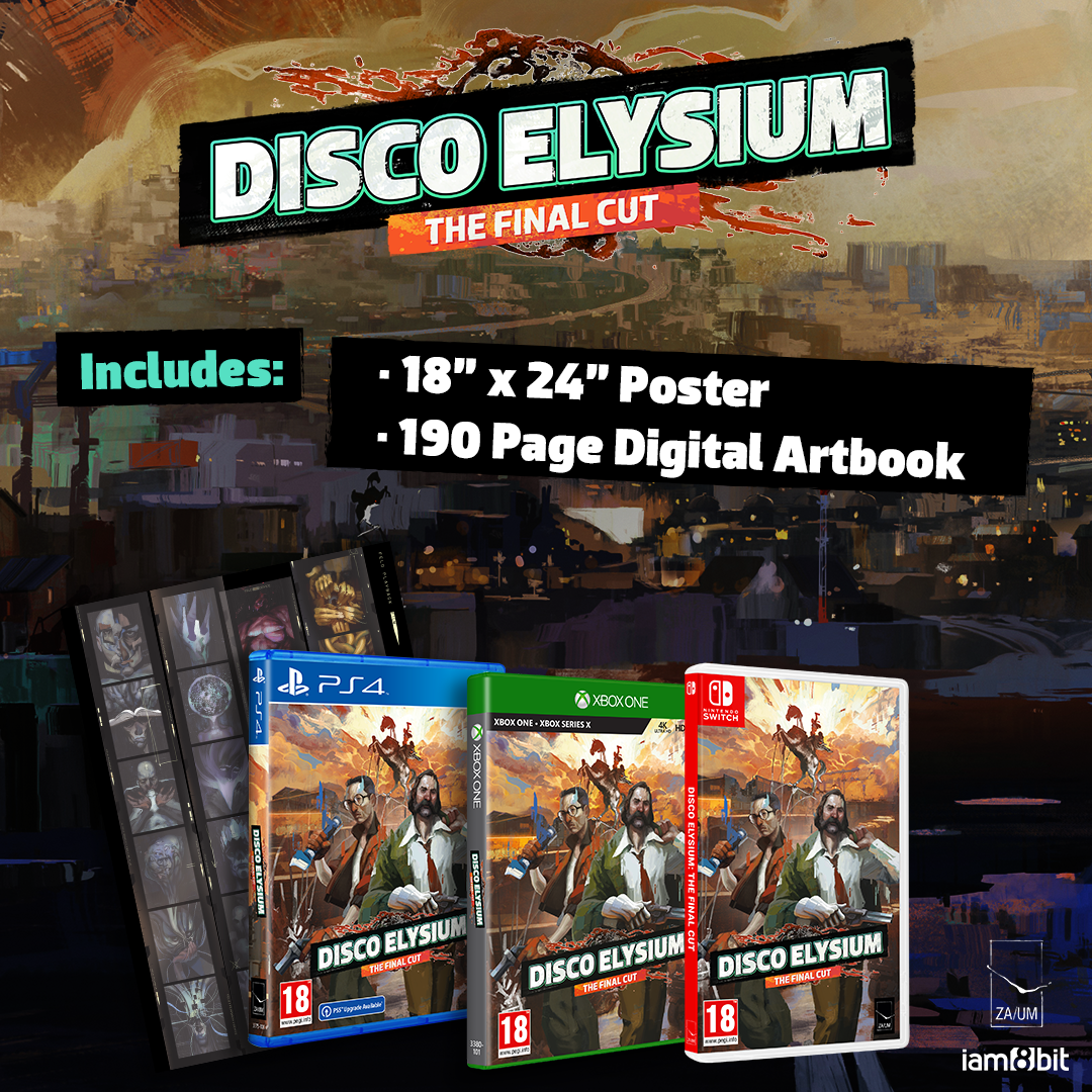 Studio ZA/UM oraz iam8bit, razem z partnerami dystrybucyjnymi Skybound Games i Koch Media Poland, mają przyjemność ogłosić, że pudełkową edycję Disco Elysium – The Final Cut na konsolę Nintendo Switch będzie można od dziś zamawiać w przedsprzedaży w dobrych sklepach z grami. Premiera tego wydania została zaplanowa na 15 marca 2022 roku.