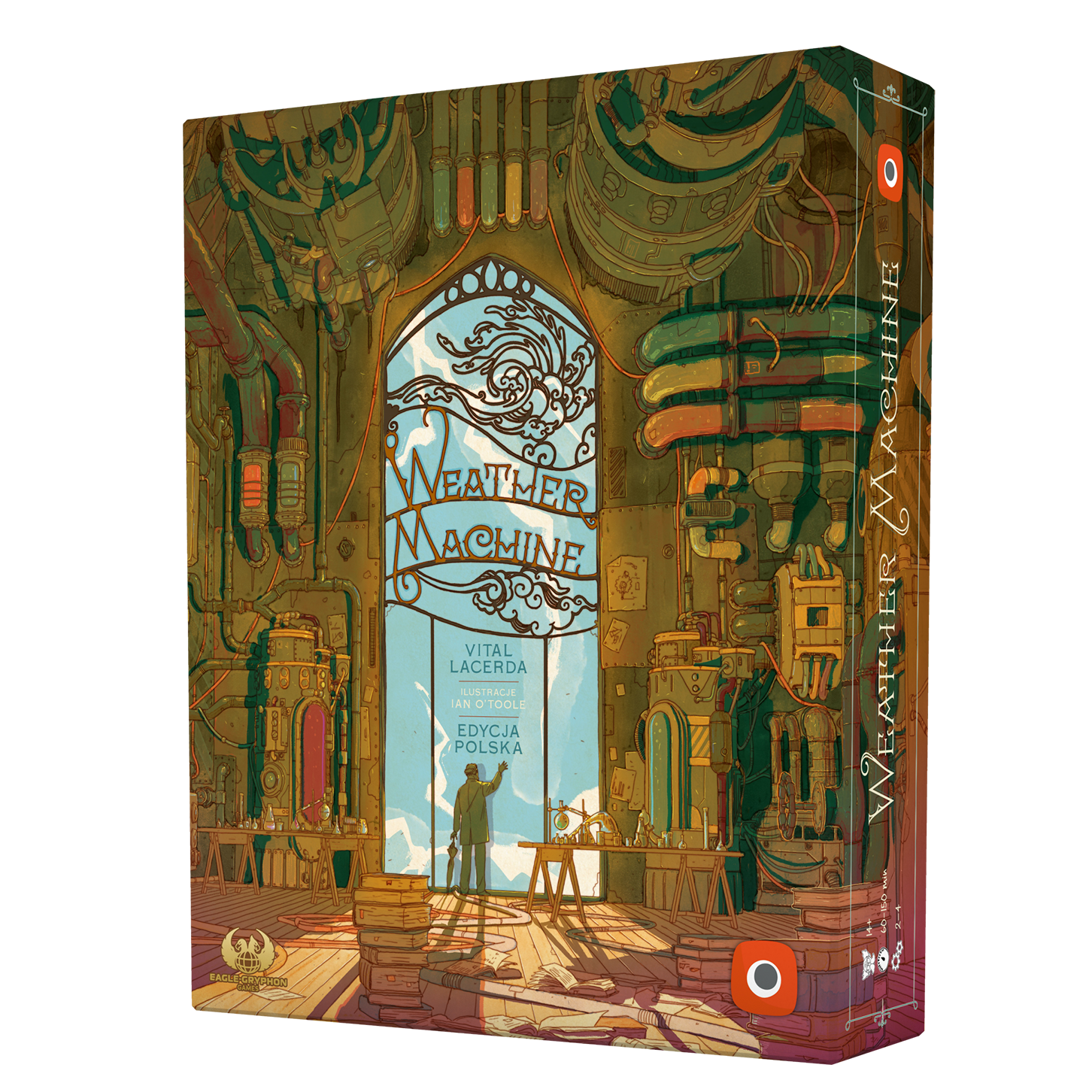 Weather Machine to ogromna, rozbudowana euro gra dla bardzo doświadczonych graczy. Zaprojektowana przez żyjącą legendę, Vitala Lacerdy’ego (On Mars, Kanban EV), przeniesie nas do stacji meteorologicznej, gdzie profesor Seni Latev stworzył maszynę zdolną sterować pogodą. Przy wykorzystaniu mechanik worker placement, tile placement i set collection staniemy się naukowcami, których zadaniem będzie utrzymanie idealnej pogody w każdym z doglądanych miejsc. Farmy potrzebują czasami deszczu, a w kurortach powinno wiecznie świecić słońce. Jednak pogoda w jednym miejscu wpływa na inne, a pozornie nieistotna decyzja może przybrać katastrofalny w skutkach efekt motyla. Podobnie jak w poprzednich projektach Lacerdy’ego, tak i tutaj mamy do czynienia z artystycznym dziełem sztuki. Duża kolorowa plansza, kilkadziesiąt customowych meepli robotów, a do tego drewniane tokeny ksiąg, które zastąpiły zwykłe tekturowe żetony. Jest na co popatrzeć!
