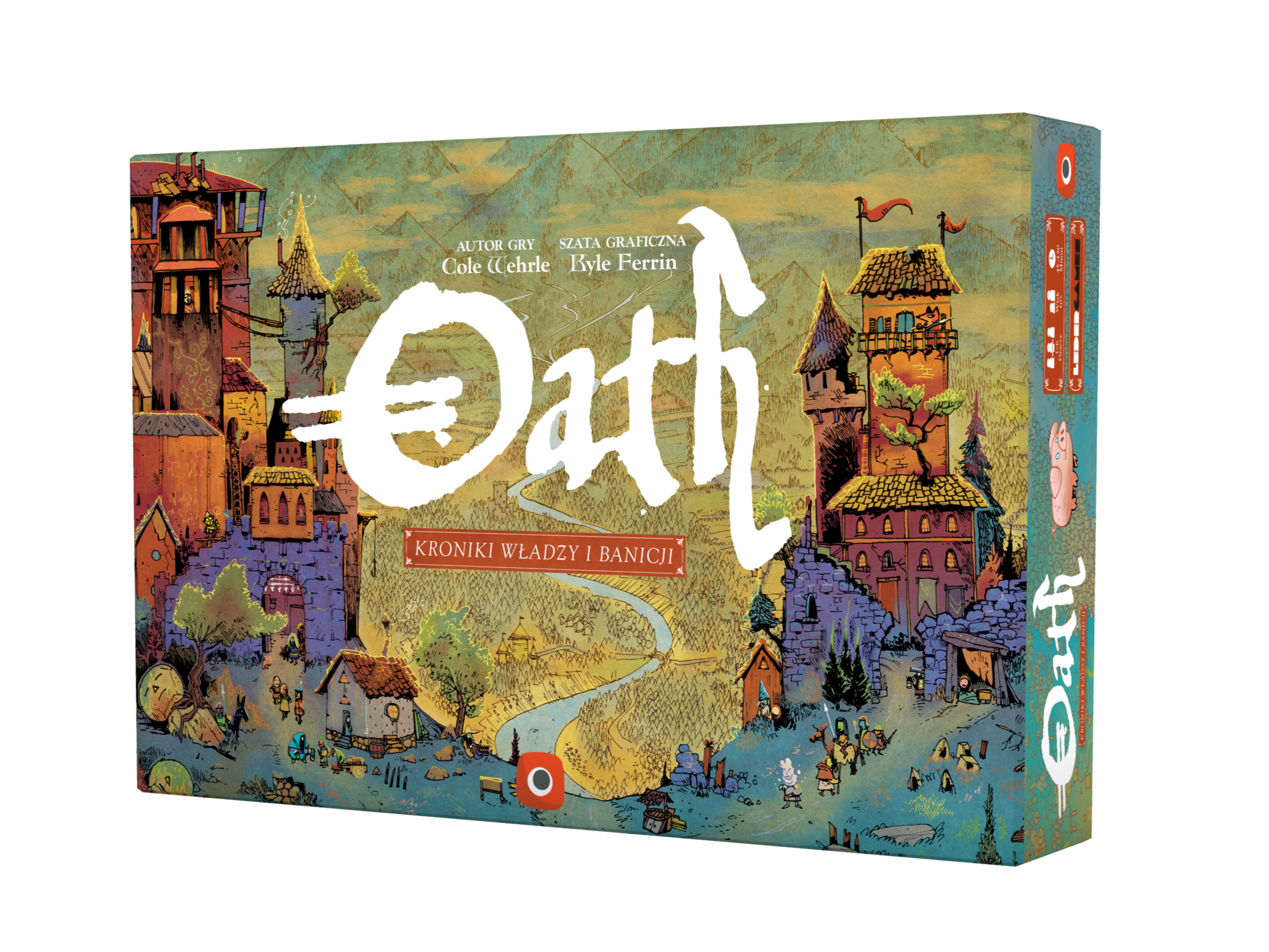 Oath: Kroniki Władzy i Banicji to ciężki strategiczny tytuł o asymetrycznej rozgrywce, będący duchowym spadkobiercą Roota. W grze o panowanie nad starożytną krainą może wziąć udział od jednego do aż sześciu graczy. Oath stanowi połączenie rozbudowanego area controle z grą narracyjną i motywem legacy, gdzie po każdej grze zmieniają się ustawienia planszy, strony konfliktu i warunki zwycięstwa. Tytuł został zaprojektowany przez uznanego Cole’a Wehrle’a (Root), a jego oryginalnym wydawcą jest, podobnie jak w przypadku Roota, Leder Games.