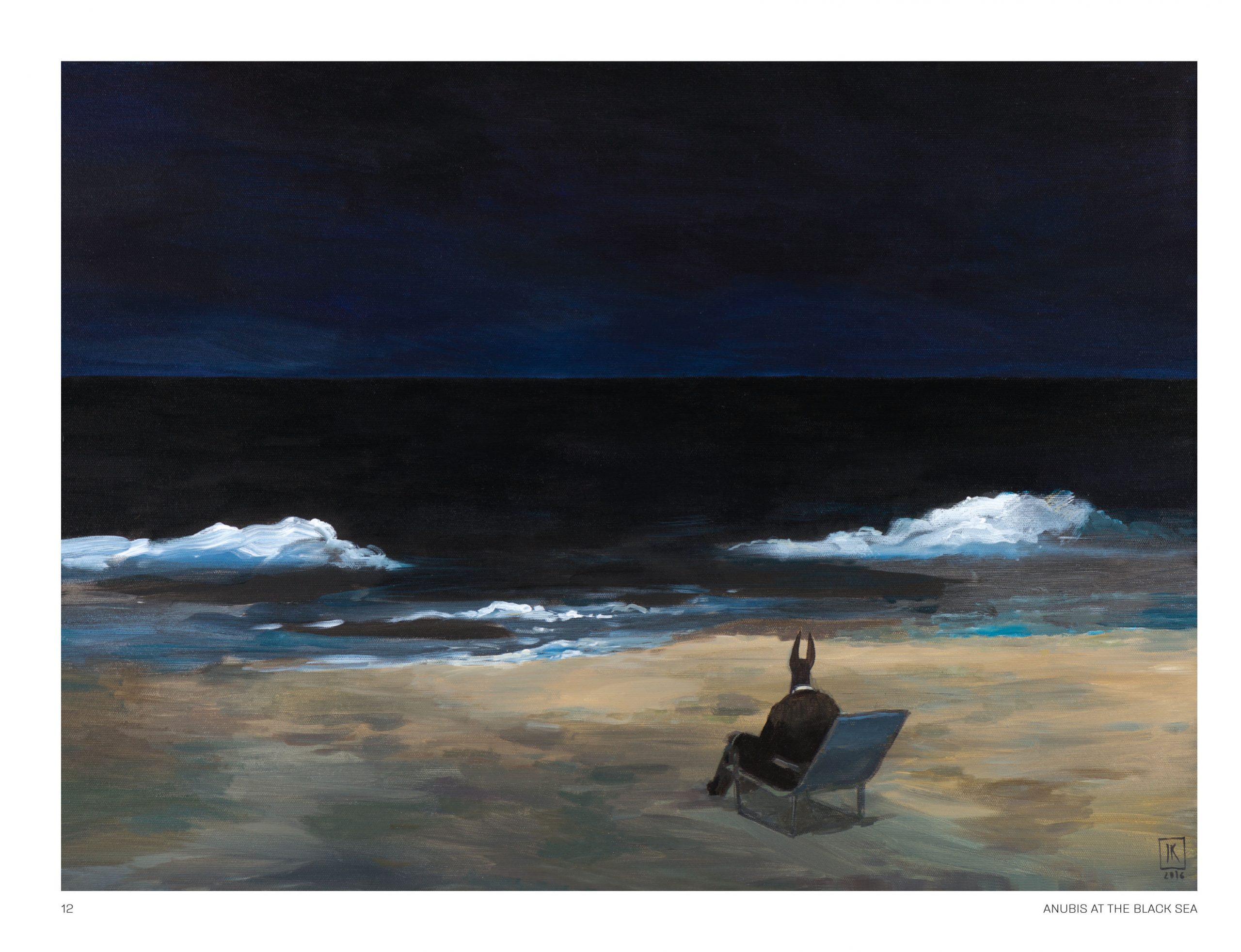 Joanna Karpowicz rozpoczęła swój malarski cykl z Anubisem w roku 2011. Egipskie bóstwo o głowie szakala, psychopomp o rodowodzie starożytnym pojawia się na płótnach Karpowicz w kontekstach współczesnych. Postać Anubisa nie jest personifikacją śmierci. Jest przewodnikiem dusz, „akuszerem odchodzących”, w ujęciu Jungowskim: „End of Life Doula”. Jest tym, który towarzyszy nam w przejściu między jednym światem a drugim. Spotykamy go na końcu swojej drogi, ale dostrzec możemy w ciągu całego życia – w miejscach, gdzie granica, pomiędzy dwoma światami jest szczególnie cienka – w “Thin Places”.