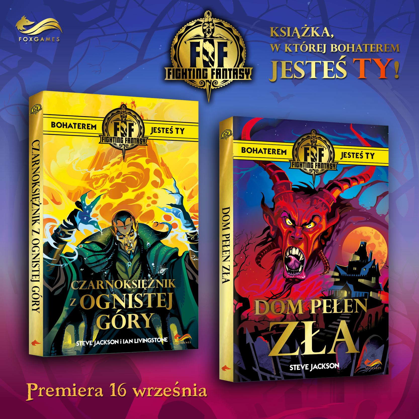 „Czarnoksiężnik z Ognistej Góry” i „Dom pełen zła” Steve’a Jacksona i Iana Livingstone’ z serii „Fighting Fantasy” zadebiutują już we wrześniu. To Wy zdecydujecie jak potoczy się przygoda!