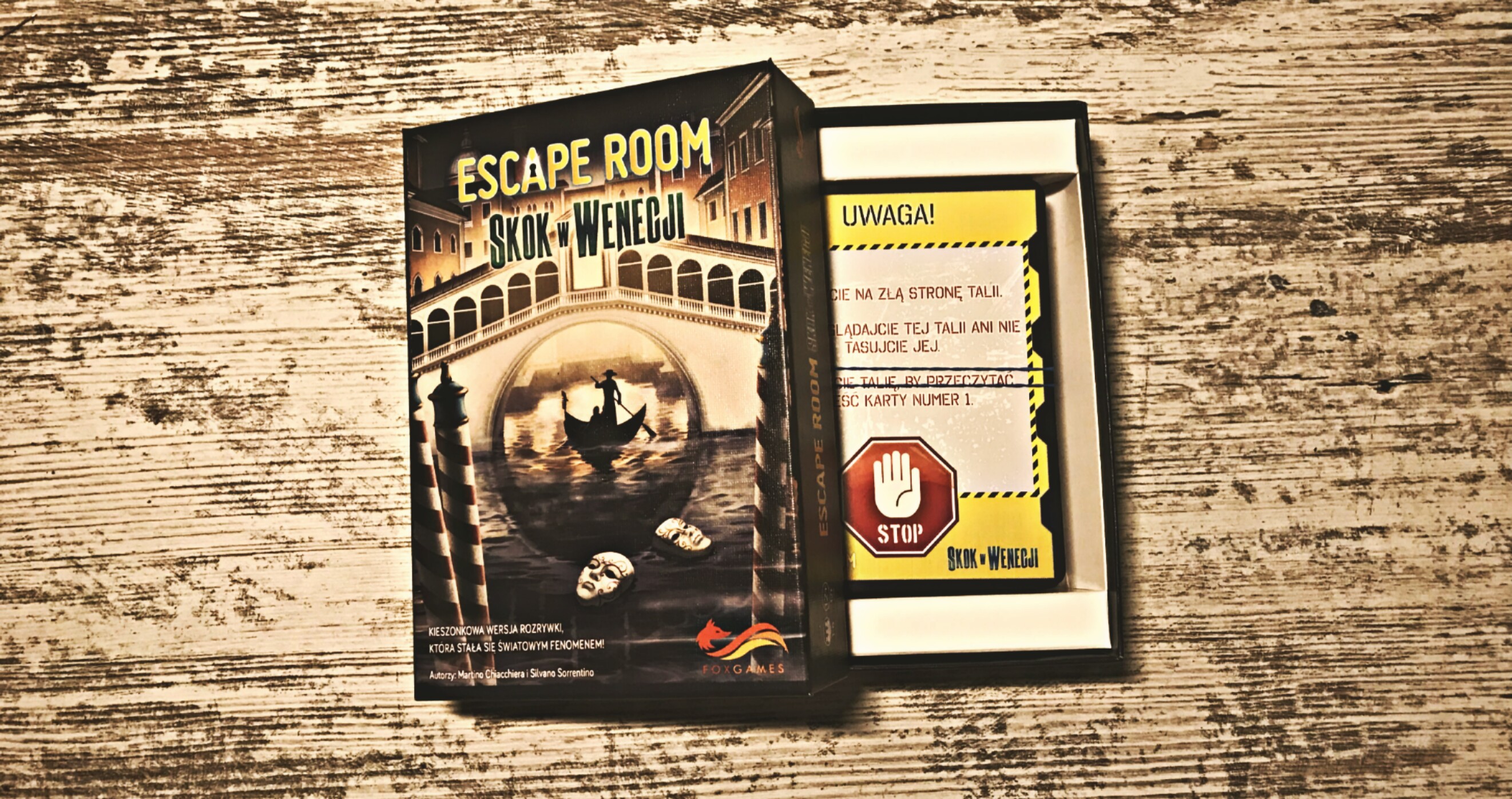 „Skok w Wenecji” stara się także – oczywiście za pomocą kart – odtworzyć otoczenie poszczególnych pomieszczeń, w których w konkretnych etapach rozgrywki znajdują się grywalne postacie. Wprawdzie kartom nie udaje się stworzyć pełnego pejzażu miejsca, ale odrobina wyobraźni w połączeniu ze szczyptą wizji graczów sprawia, że imersja nie zostaje zachwiana przez drobne „braki”. Różnorodność w zadaniach również przyczynia się do odebrania gry jako wiarygodnego (i rozbudowanego) odpowiednika pokoju zagadek – i w tym przypadku twórcy przyłożyli wszelkich starań, aby grający nie tylko dali złapać się na swoistą iluzję, lecz żeby czerpali z niej jak najwięcej przyjemności. Nie można ukryć, że ta odsłona serii to najbardziej udana (z dotychczasowych trzech).