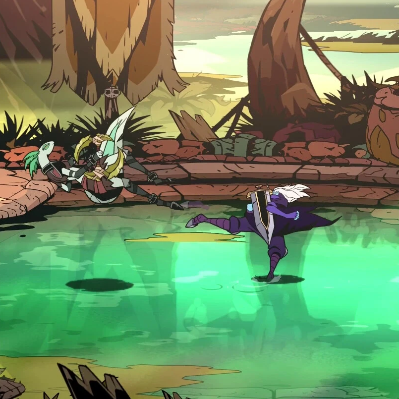Oprawa zasługuje na osobny ukłon. Absolum wygląda jak żywa animacja fantasy, pełna mocnych kolorów, ekspresyjnych postaci i pięknie rysowanych lokacji. To nie jest realizm, tylko styl. I bardzo dobrze. Świat Talamh ma własny charakter, trochę baśniowy, trochę postapokaliptyczny, trochę jak stara kreskówka, która po latach wróciła z nożem w zębach. Muzyka i dźwięki walki robią resztę. Uderzenia brzmią soczyście, magia wybucha z energią, a całość doskonale podbija tempo akcji.