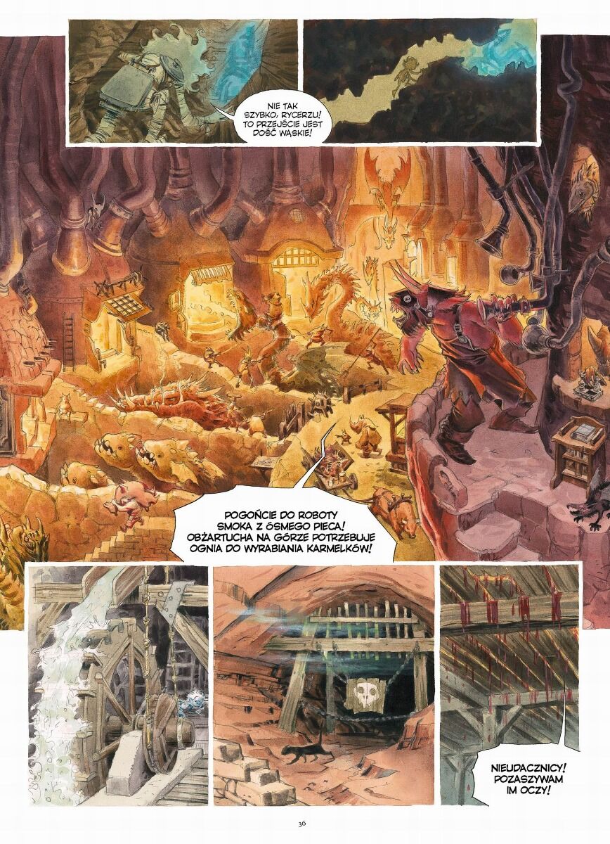 Fabien Vehlmann konstruuje opowieść w sposób, który przywołuje skojarzenia z mroczniejszymi odmianami baśni znanych z twórczości braci Grimm. Nie ma tu miejsca na pełne bezpieczeństwo ani na wygodne moralizowanie. Bohaterowie muszą improwizować, wykorzystywać spryt i odwagę, a niekiedy także zwyczajną determinację, by przetrwać kolejne zagrożenia. Największą siłą scenariusza jest jego pomysłowość, ponieważ każdy etap wędrówki przez ogrzą kuchnię przynosi nowe rozwiązania i zaskakujące elementy świata przedstawionego.