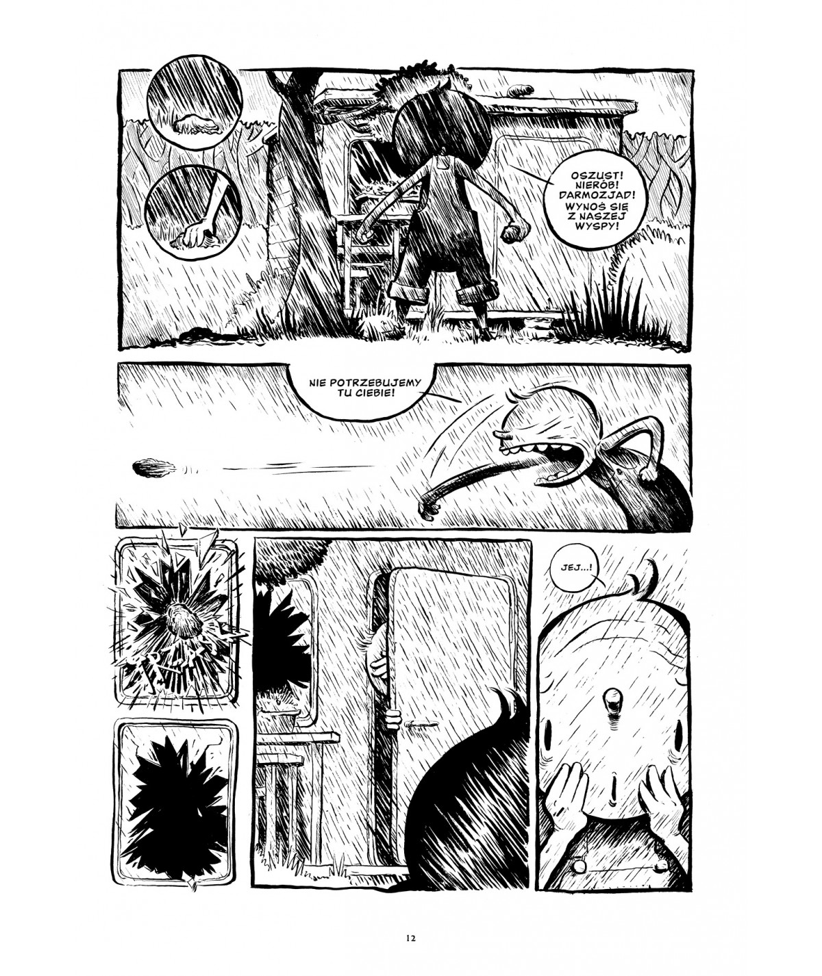 Warstwa graficzna Kuby Babczyńskiego zasługuje na osobny zachwyt. Ta kreska jest natychmiast rozpoznawalna, gęsta, pełna tuszowych smug, cięższa niż w większości współczesnych komiksów, a przy tym niezwykle ekspresyjna. Widać w niej przywiązanie do każdego fragmentu tego świata, do każdej wyspy, czapki, potwora i zakamarka. Czerń i biel nie są tu ograniczeniem, tylko siłą. Dzięki nim archipelag zyskuje charakter snu, dziwnej kroniki albo starej opowieści wyciągniętej z jakiejś szuflady pełnej sekretów. Chwilami plansze są tak pełne detali, że wzrok naprawdę musi się po nich przedzierać, ale to nie wada, tylko część doświadczenia. Ten świat nie ma być gładki. Ma być lepki od znaczeń, trochę nieporządny, żywy.