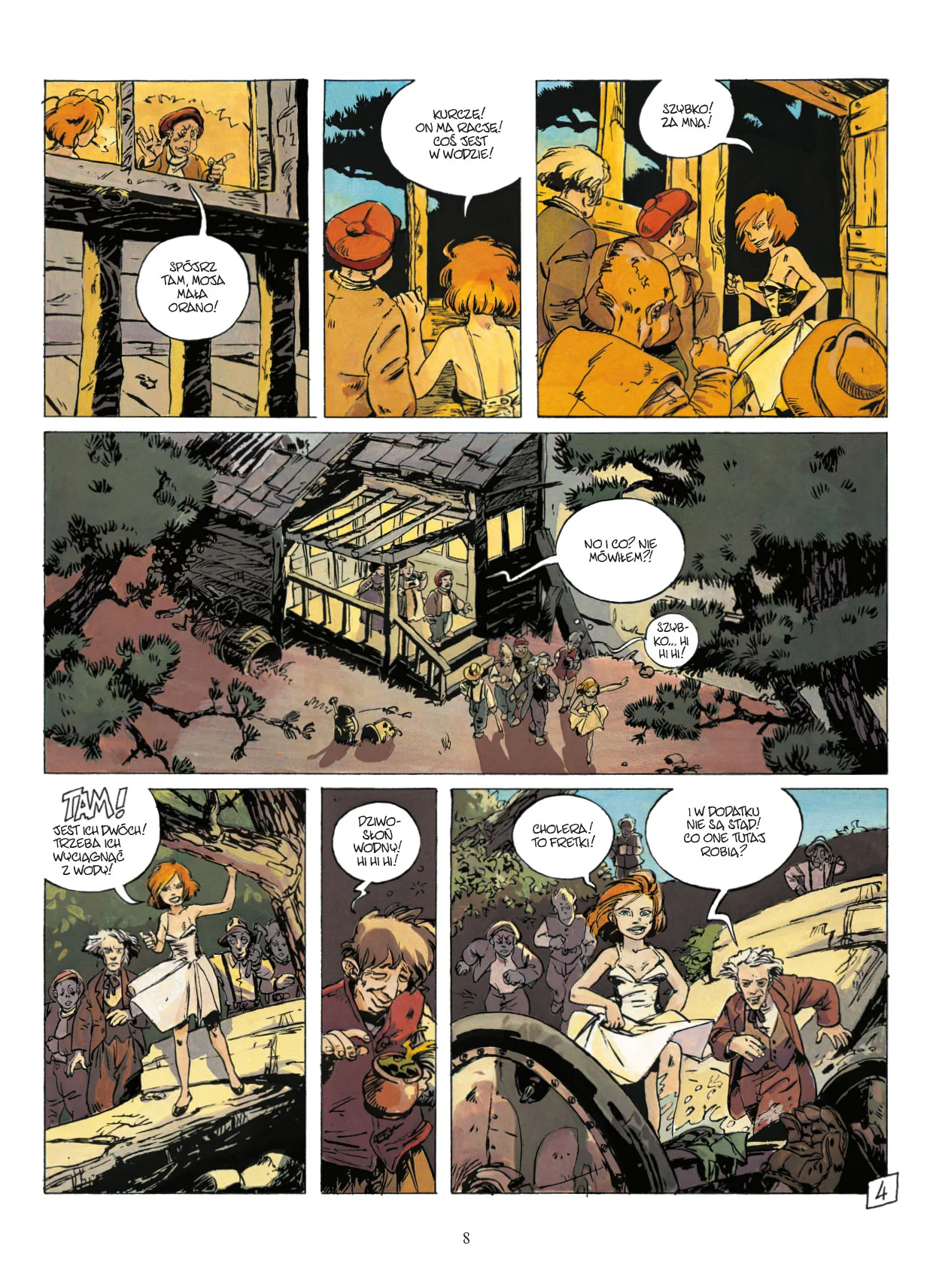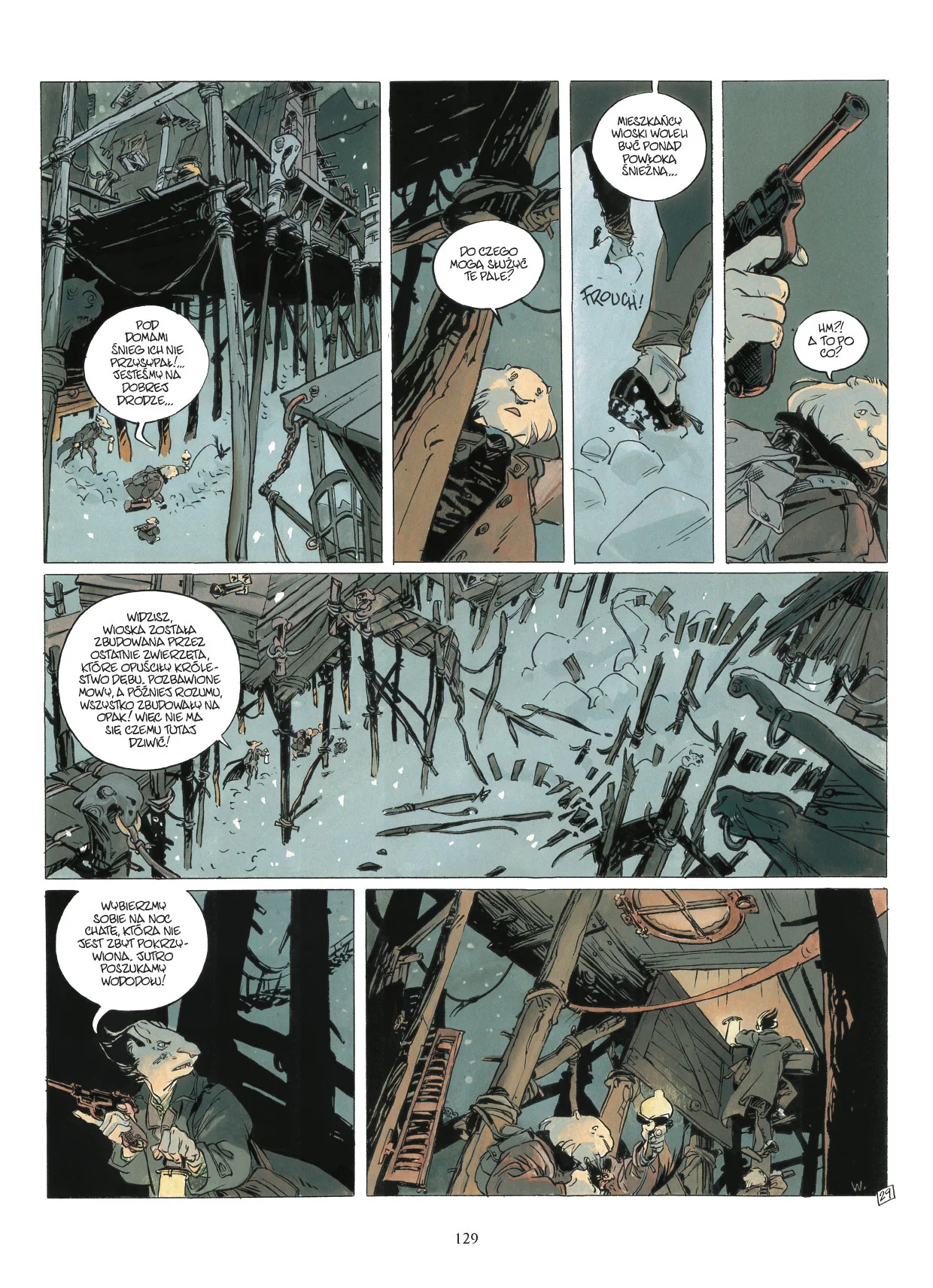 Wendling natomiast robi coś, co udaje się nielicznym. Rysuje tak, że komiks staje się doświadczeniem, a nie tylko lekturą. Jej styl jest jednocześnie zwiewny i sugestywny. Postacie oddychają, zwierzęta mają charakter, tła niosą bogactwo szczegółów, w których można utknąć wzrokiem na dłużej niż wypada, a kolory potrafią delikatnie zmienić temperaturę sceny, zanim fabuła powie wprost, że robi się źle. Wraz z narastającym chaosem barwy ciemnieją, gęstnieją, a mrok zaczyna „brudzić” nie tylko świat, ale i odbiór czytelnika. To rysunek, który uwodzi łagodnością, po czym przypomina, że łagodność nie jest tu gwarancją bezpieczeństwa.