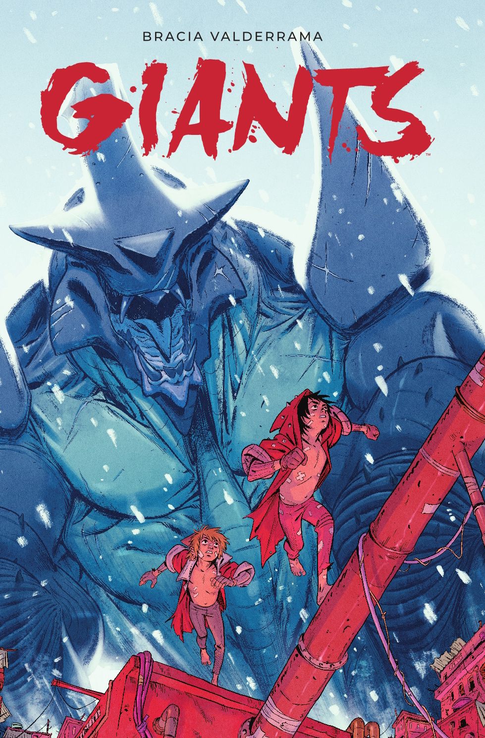 W stylu brata odpowiedzialnego za warstwę graficzną wyraźnie widać wpływ komiksu japońskiego, choć i garściami czerpie z współczesnych amerykańskich technik. Jednak to nawiązania do mangi wywołują w czytelniku skojarzenia z wieloma motywami tak często wykorzystywanymi w dalekowschodnich historiach („Serafin Dni Ostatnich”, „Posępny Mononokean”) – i w takim porównaniu, „Giants” staje się skondensowaną opowieścią, która potrafiła na stu dwudziestu stronach to, co w rozrywkowych mangach nie udaje się zrobić przez trzydzieści tomów. Miguel Valderrama całkiem nieźle radzi sobie też z dynamiką scen, ekspresją bohaterów i zachowaniem proporcji.