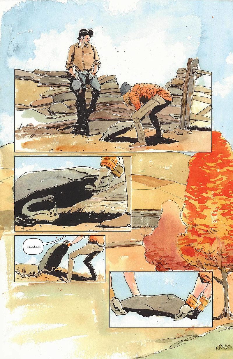 Całość domyka pastelowa, stonowana kolorystyka oraz oniryczne ilustracje. Warsztat Tylera Jenkinsa i praca z nałożeniem kolorów Hilary Jenkins to coś, czego nie spotyka się w pierwszym z brzegu komiksie, to przemyślane działanie, które ma oddać ducha scenariusza, tej konkretnej fabuły. Przez to pozornie niedbałe rysunki, gdzieniegdzie jakby niedokończone sygnalizują nam, że nie znamy tego świata w pełni, że układanka jeszcze nie została ułożona. Ale przecież ktoś, kto tak dobrze zna proporcje rzeczy, anatomie ludzkiego ciała i wcale dobrze radzi sobie z dynamiką ruchów musiał nadać warstwie wizualnej akurat taki charakter celowo.