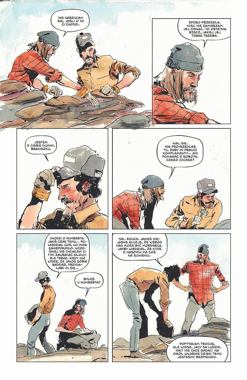 Samo tempo akcji rozwija się raczej miarowo, lekko ospale, pozwalając konsekwentnie rozbudowywać świat, historię miejsca i bohaterów, ich motywacje oraz grzechy z przeszłości. Przede wszystkim komiks ukazuje w jaki sposób ludzie integrują się w społeczność, jak z „obcych” stają się „swoimi” – i jak za sprawą pewnego incydentu i cienia niepewności i podejrzeń ta zwarta niegdyś grupa zaczyna się dzielić, atomizować, ponownie stawać się kimś, kogo tak naprawdę się nie zna, a jedną z rzeczy, które do tego prowadzą są w tym przypadku tajemnice.
