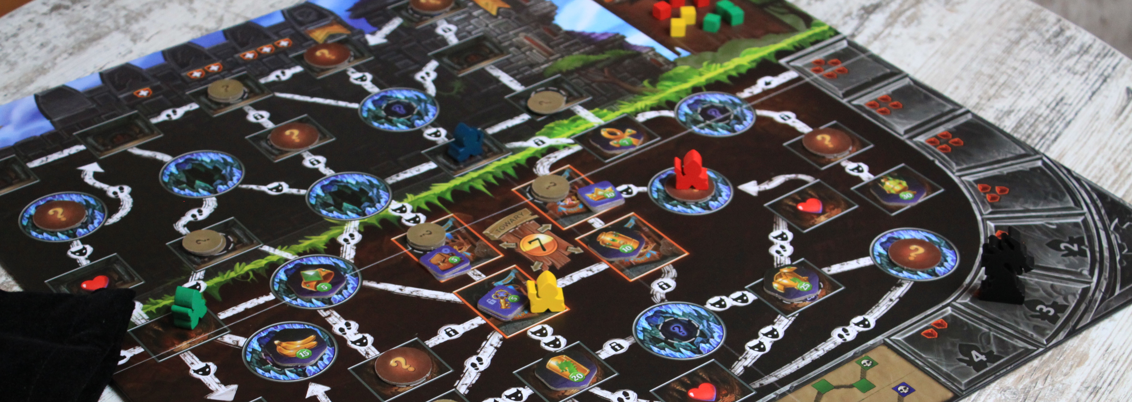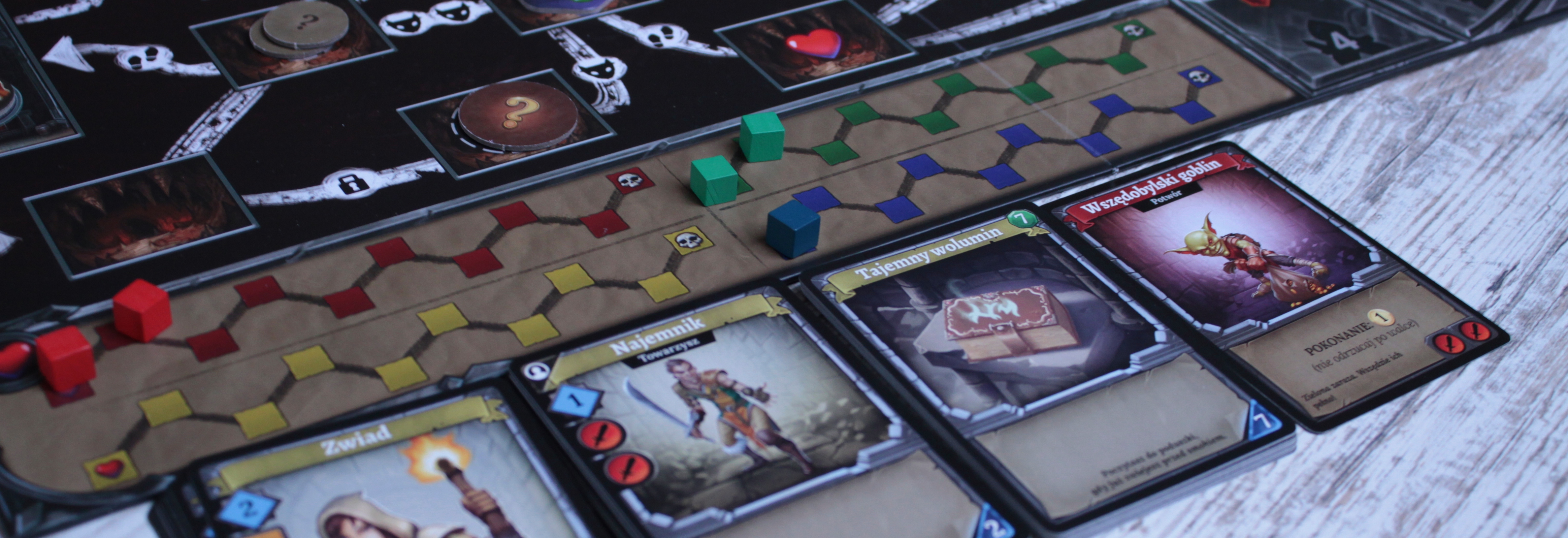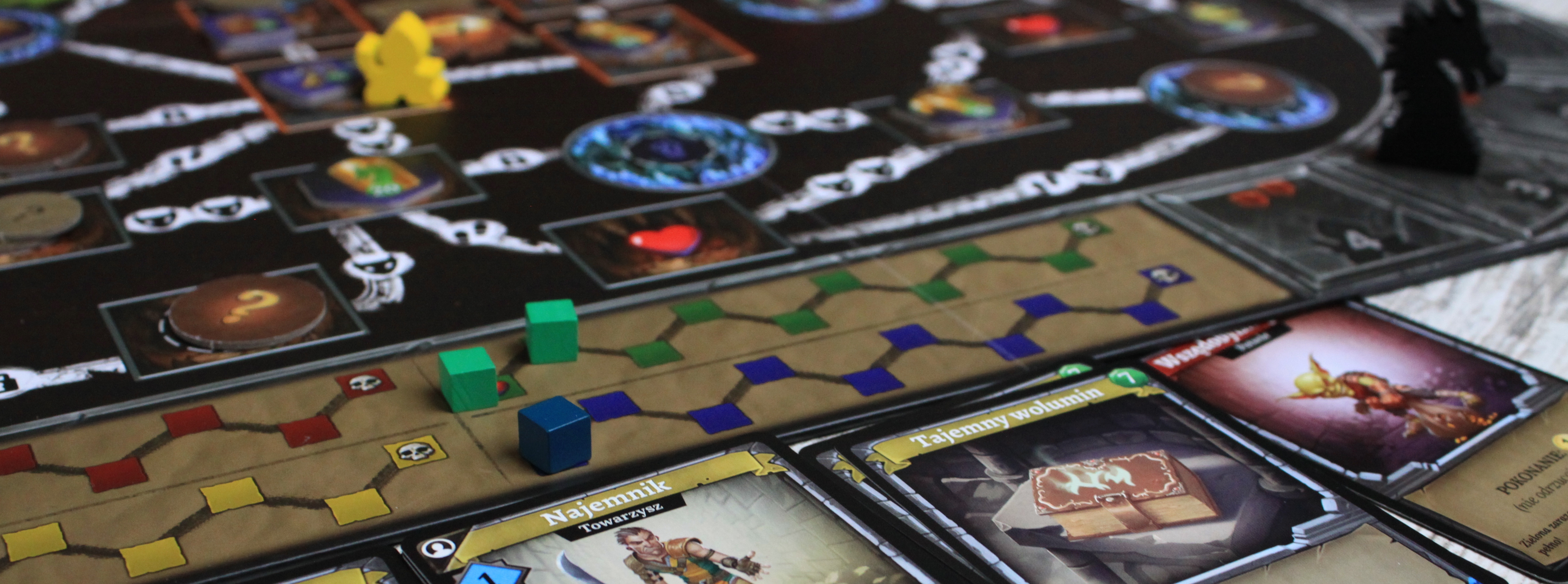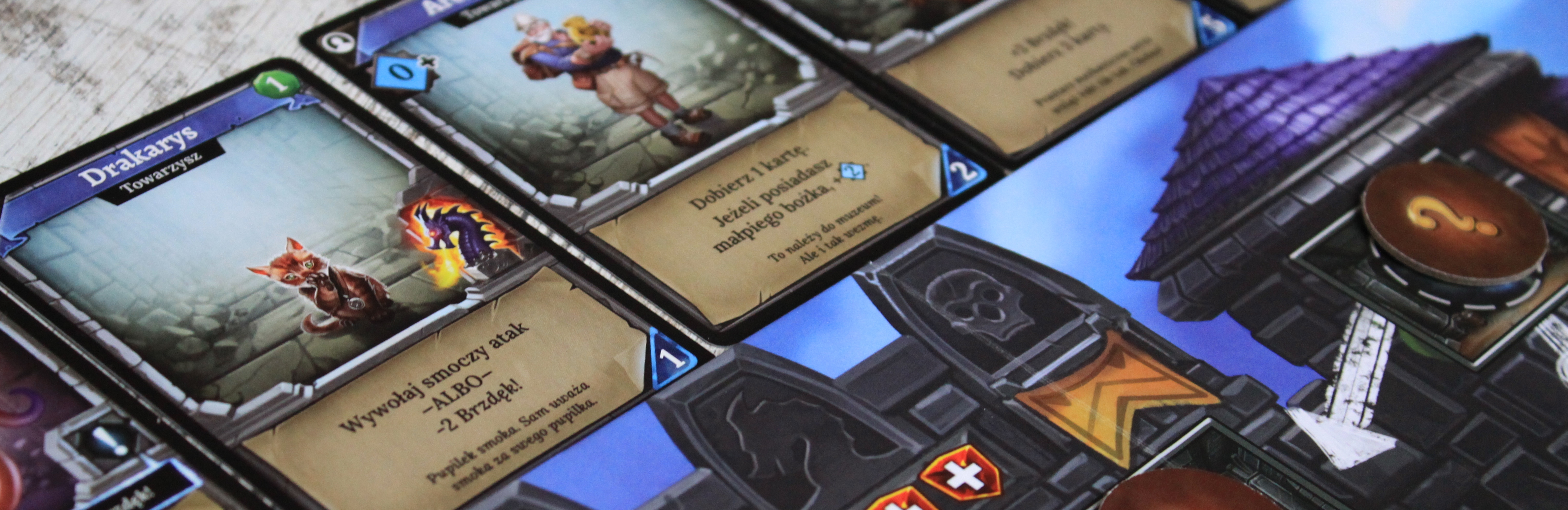 Wspomniana podwójna plansza oraz spora liczba kart i żetonów korzystnie wpływa na regrywalność tytułu, gdyż nawet przez kilka partii z rzędu możemy próbować nowych strategii i metod na zdobycie największej ilości punktów. Co zaskakujące, bardzo przyjemnie gra się w każdej możliwej konfiguracji, choć partie jeden na jednego bywają nieco zbyt mało emocjonujące (każdy idzie w swoją stronę po artefakt i o wygranej najczęściej decydują zebrane po drodze punkty), zaś w pełnym składzie mogą się zdarzyć delikatne przestoje, gdy trafimy na niezdecydowanego gracza zastanawiającego się nad możliwymi ruchami. Mimo to rozgrywki w trzy lub cztery osoby są najbardziej angażujące, gdyż wyścig po najlepsze artefakty oraz przedmioty porozmieszczane po planszy bywa naprawdę zaciekły (np. są jedynie dwa plecaki umożliwiające zdobycie dwóch artefaktów oraz dwa klucze otwierające zamknięte ścieżki), a karty lochów znacznie szybciej się zmieniają na stole. Ciekawostkę stanowi fakt, że po ściągnięciu dedykowanej aplikacji oryginalnego wydawcy (przez co niezbędna jest znajomość języka angielskiego) zyskujemy możliwość rozgrywania partii solo, gdyż to aplikacja przejmuje rolę naszego wirtualnego przeciwnika (który co prawda nie zdobywa punktów, ale „rozgrywa swoją turę” wpływając na karty lochów) i każe nam wykonywać misje, których ukończenie skutkuje zdobyciem nagrody, a przegrana zwiększeniem liczby kostek hałasu lub inną karą oraz wywołuje smocze ataki. Jest to bardzo ciekawa alternatywa i muszę przyznać, że bardzo dobrze się spisuje, gdyż rozegrane w ten sposób partie za każdym razem były zróżnicowane i kończyły się różnie, zarówno moją przegraną jak i wygraną.