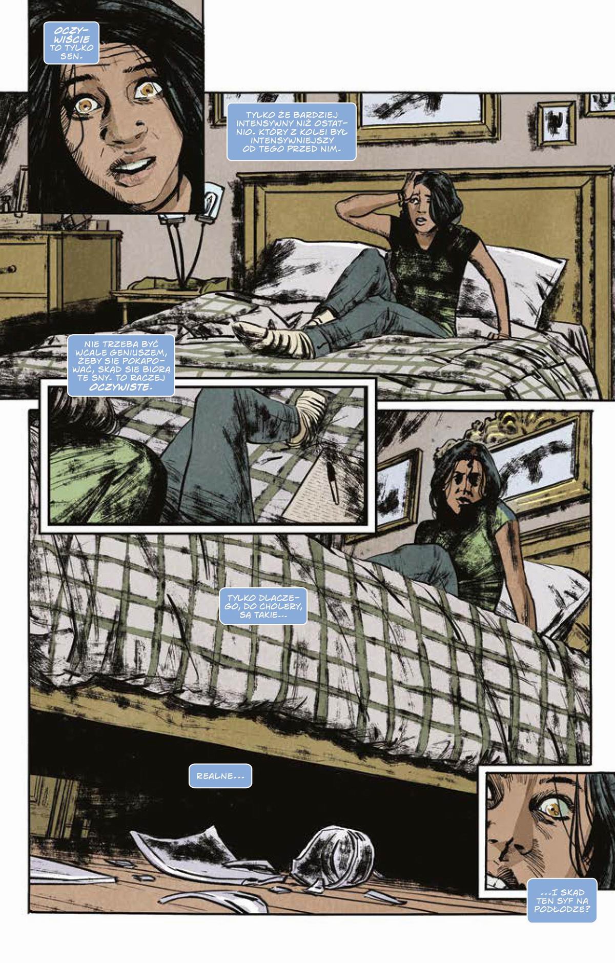 Opowieść nie należy do przesadnie skomplikowanych – do pewnego momentu to przedstawienie obyczajowej codzienności, które czasem przetykają mroczne wizje z pogranicza sennego koszmaru – ale wreszcie wzmaga się napięcie, z każdą kolejną stroną tylko rosnąc. I chociaż fabułę trudno określić niebywale interesującą, to podejmowane na kartach komiksu tematy angażują i mogą we właściwy dla horroru, metaforyczny sposób zobrazować emocjonalność osoby z poczuciem osamotnienia, strachu przed niezrozumieniem i wrogości.