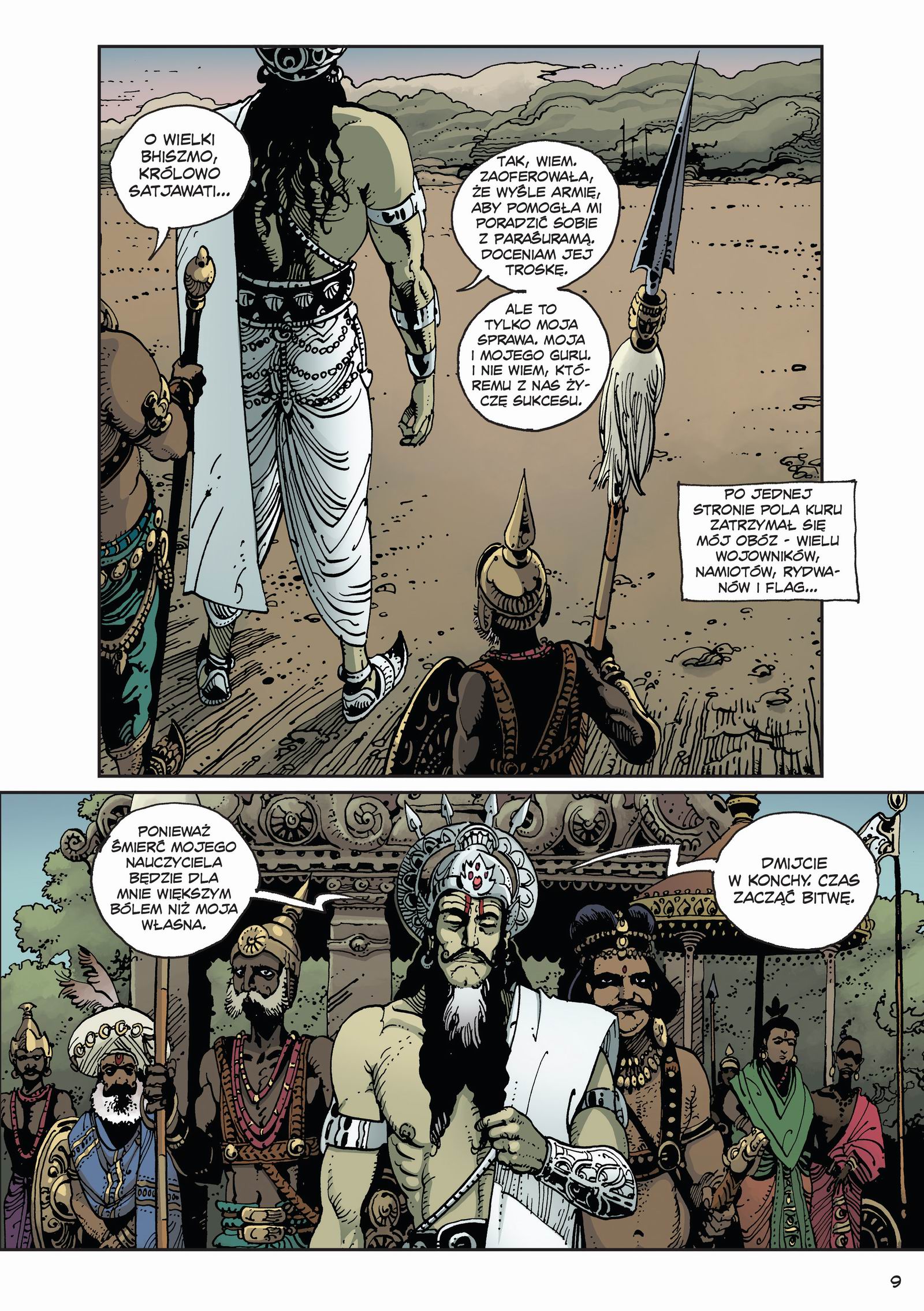 Tom drugi ma znacznie więcej przestrzeni metafizycznej niż poprzedni. Dostajemy nie tylko kontynuację zemsty Amby, ale też historię narodzin Bhiszmy, i to taką, która nie mieści się w ramach logiki. Bohater okazuje się istotą zawieszoną między światami, ulepioną z mitów i kaprysów bogów. To właśnie ta część tomu robi największe wrażenie, przekraczamy granicę zwykłego fantasy i wchodzimy w strefę czystego mitu, gdzie nic nie jest dosłowne, a wszystko ma znaczenie. Bogowie kochają, cierpią, krzywdzą i próbują naprawić swoje błędy. Tylko że ich działania odbijają się echem przez epoki.