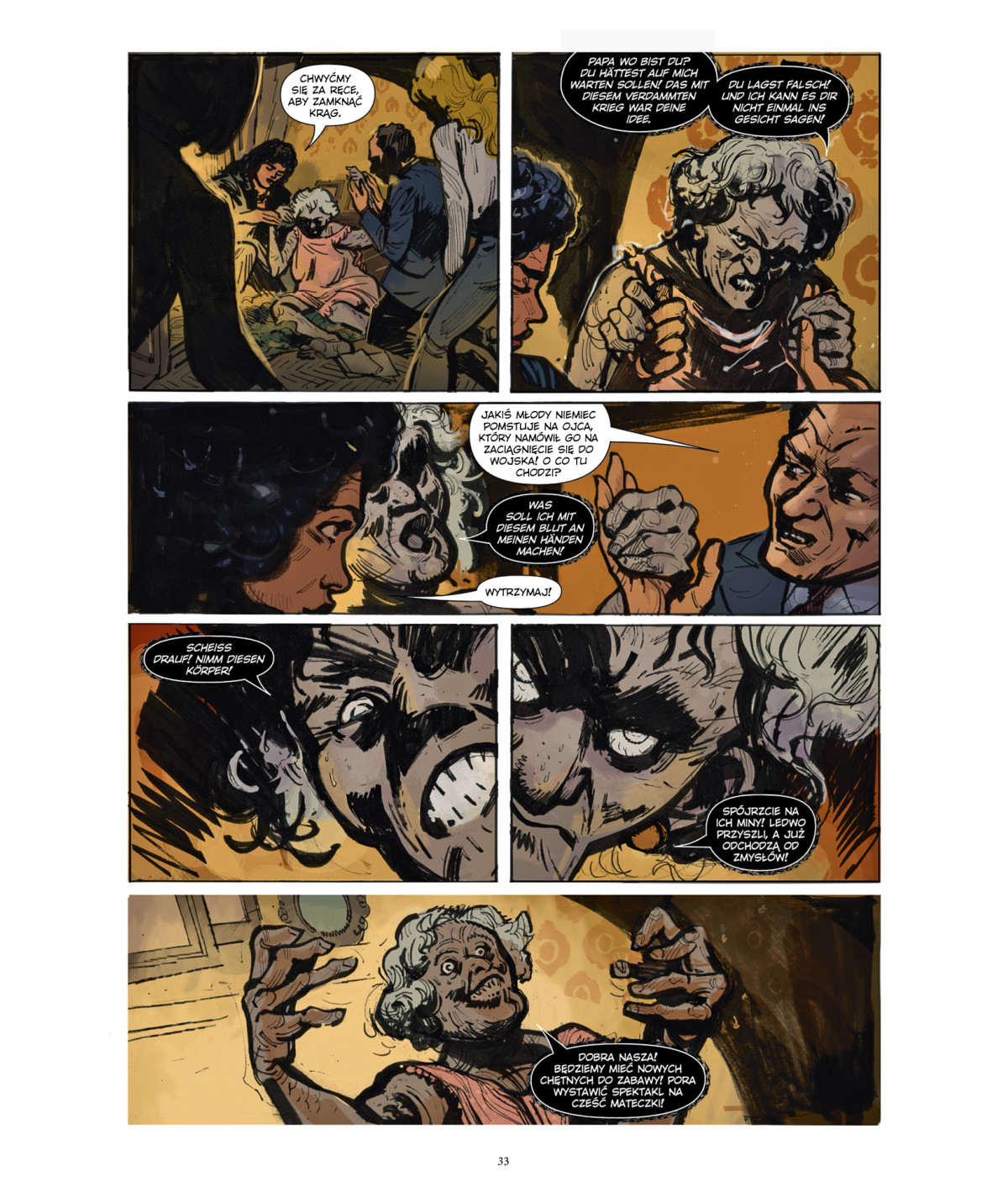 Znakomicie wypada też sceneria: miasto jako wielki cmentarz, pełne zakopanych tajemnic i ofiar, które nikt nie chciał pochować z godnością. Ta warstwa społeczno-historyczna naprawdę działa, podbija emocje i nadaje opowieści głębi. Choć to historia poboczna, pojawiają się postacie znane z wcześniejszych zeszytów: Kalina, mityczna boginka o tajemniczej przeszłości, i Szaweł, lojalny lokaj Heleny. Ich relacje są lekkie, nieprzesadzone, a przez to naturalne. W tle przewija się też major Filip Dobrowolski, kolejny smaczek dla fanów uniwersum.