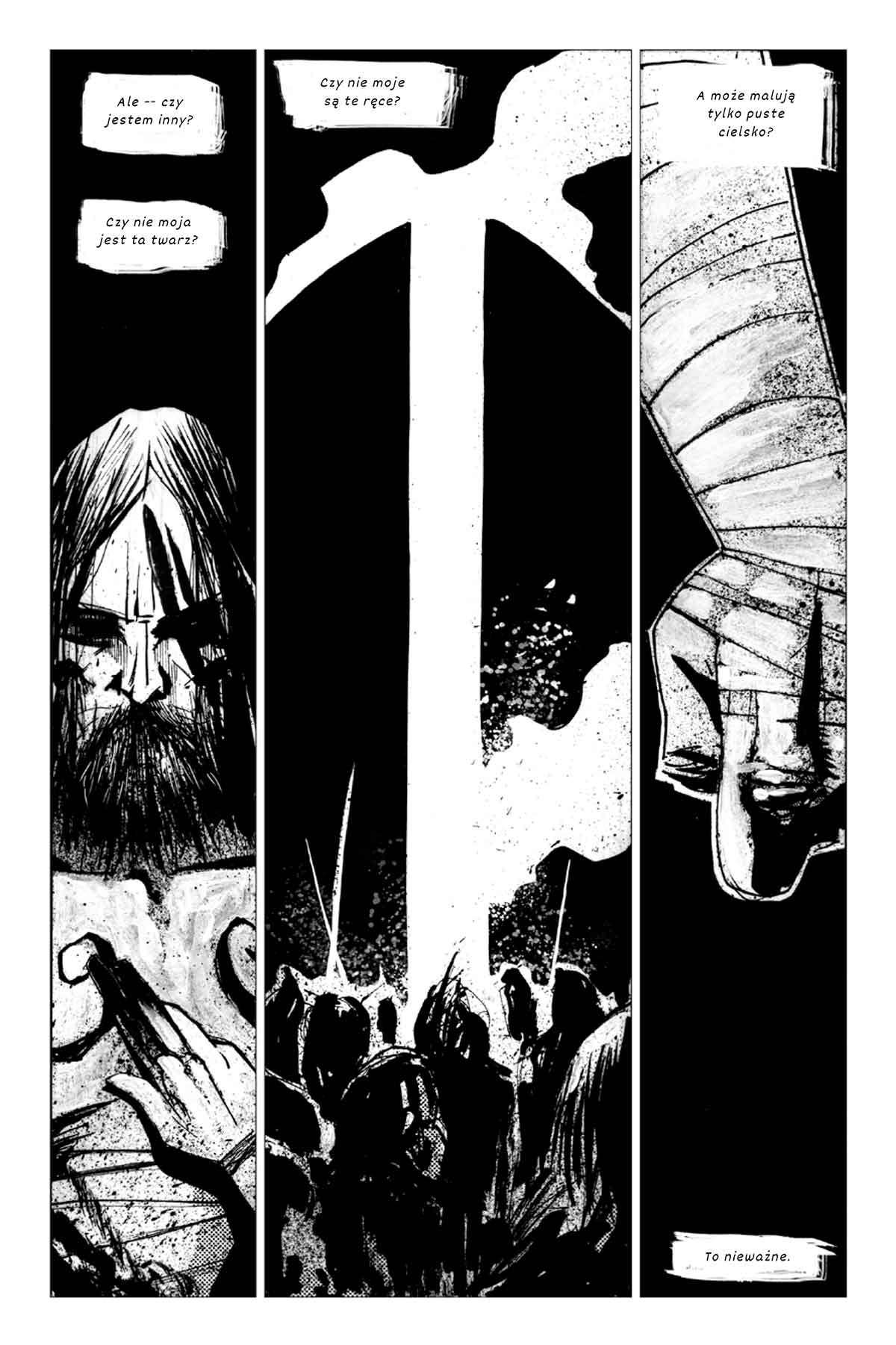 W tego typu historii o tak określonym ciężarze tematu, natężeniu brutalności i przemocy zastosowanie wyłącznie czarno-białej oprawy graficznej wydaje się najzasadniejsze. Odpowiednia ekspresja postaci, posępność świata i życia na nim, twardość i ostrość przywodzące na myśl coś groźnego, dzikiego, nieopanowanego to elementy, których uzyskanie możliwe było dzięki tej poetyce. Trudno wyobrazić sobie tę opowieść w kolorze… zbyt wiele mogłoby się nie udać. No i zatraciłby się klimat ulotności, odrealnienia, wrażenia sennego koszmaru.