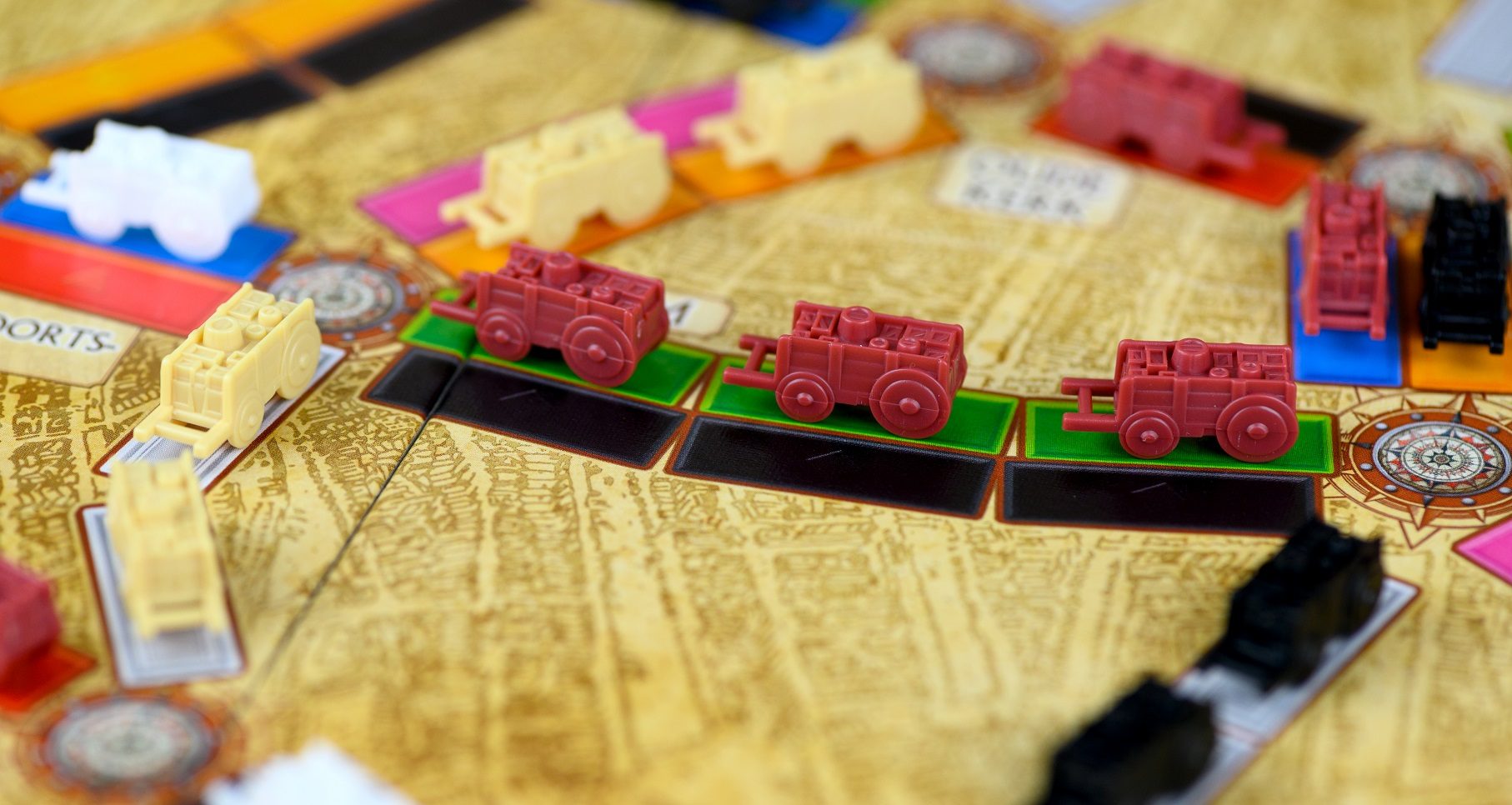 Rozgrywka polega z kolei na wykonywaniu w swojej turze jednej z trzech akcji. Pierwsza to stworzenie połączenia między dwoma lokacjami (wymaga posiadania kart lokomocji w odpowiednim kolorze lub jokerze). Druga to dobranie kart lokomocji (z odsłoniętych, z zakrytych albo jedną odkrytą, drugą zakrytą – jedno zastrzeżenie: nie można wziąć dwóch odsłoniętych jokerów, inne kombinacje są dozwolone. Trzecia to dobranie kontraktu, na zasadach początku, tzn. dobiera się dwa ze stosu i jeden można, choć nie trzeba odrzucić. Gra dobiega końca, gdy komuś kończą się wózki – w momencie, kiedy jeden z graczy ma w swoich zbiorach co najwyżej dwie figurki pozostali wykonują jeszcze jedną turę i następuje koniec.