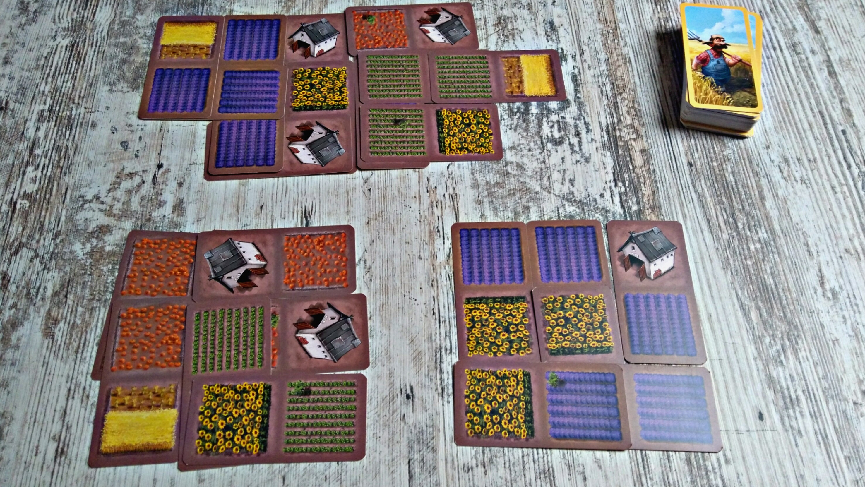 Podczas rozgrywki każdy z graczy po kolei wykonuje swoją turę mając do dyspozycji dwie akcje: założenie nowych upraw (czyli obowiązkowe wyłożenie kart) oraz zbiory (nieobowiązkowe). Wykładając karty należy pamiętać o kilku zasadach, po pierwsze nasze pole nie może być większe niż kwadrat o boku trzy na trzy, po drugie karty z uprawami mogą zakrywać inne uprawy, lecz nie mogą przykryć spichlerza, (którym to można już przykryć wszystko) oraz dwa spichlerze nie mogą sąsiadować ze sobą bokami. W przypadku dokładania kart do spółdzielni powyższe zasady z grubsza wyglądają tak samo, z tą różnicą, że wielkość pola jest nieograniczona a dokładana karta musi zakryć tylko jedną część pola, (czyli nie można całkowicie zakryć karty inną kartą). Po obowiązkowym dołożeniu upraw do swojego pola i do spółdzielni, gracz może zdecydować się na zbiory, jeśli uzbierał minimum siedem pól danego rodzaju (wliczając w to również te, leżące w spółdzielni), wtedy zabiera się kartę punktacji z odpowiednią sumą pól – przykładowo za ziemniaki – i dany gracz już więcej nie będzie mógł zebrać tej konkretnej uprawy.  Gra toczy się do momentu aż wyczerpie się stos upraw, a gracze pozbędą się z ręki wszystkich kart lub gdy ktoś przeprowadzi zbiory każdego rodzaju uprawy, wtedy następuje podliczenie punktów na posiadanych kartach i za posiadane karty zbiorów. Wygrywa tradycyjnie gracz z największą ilością uzbieranych punktów.