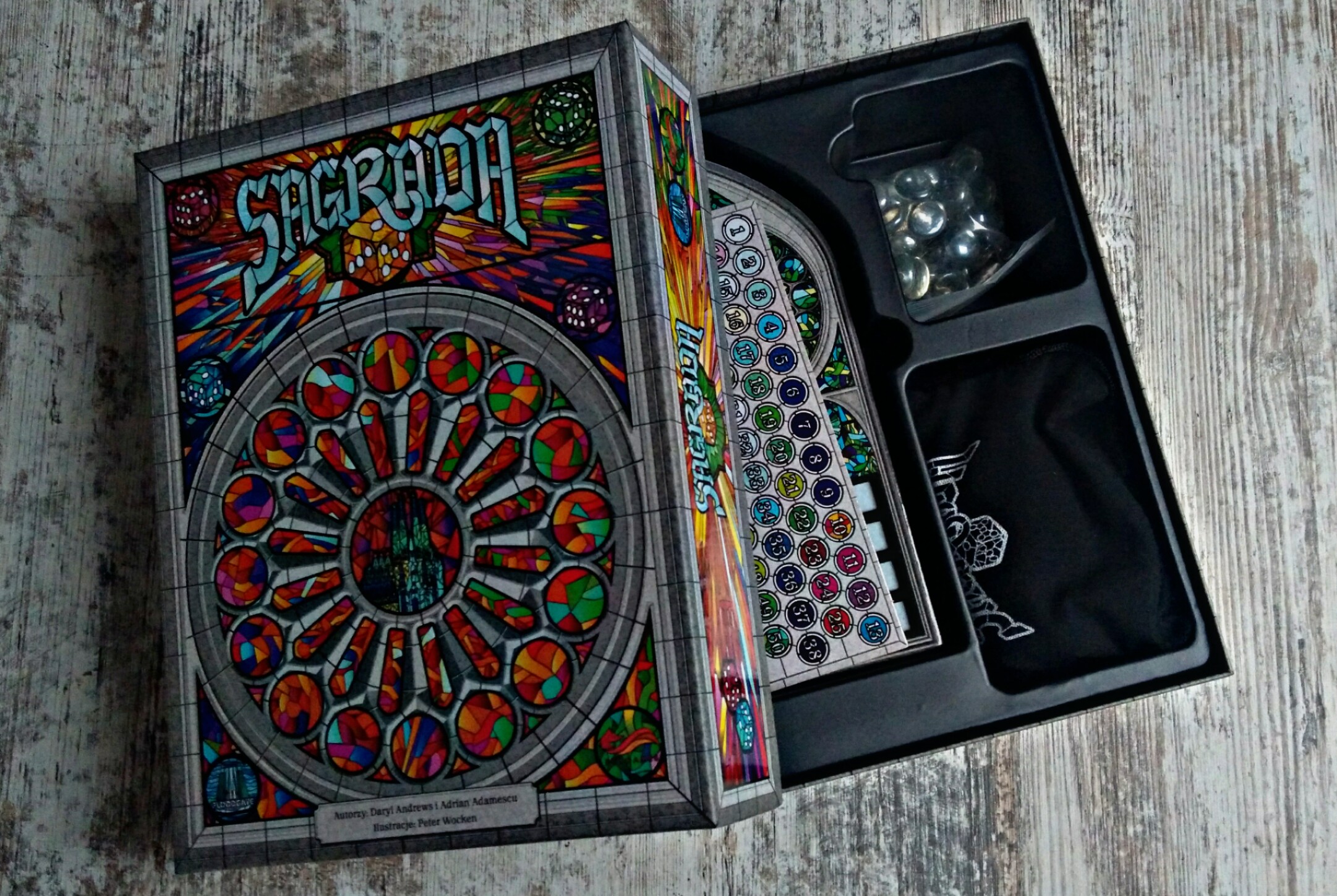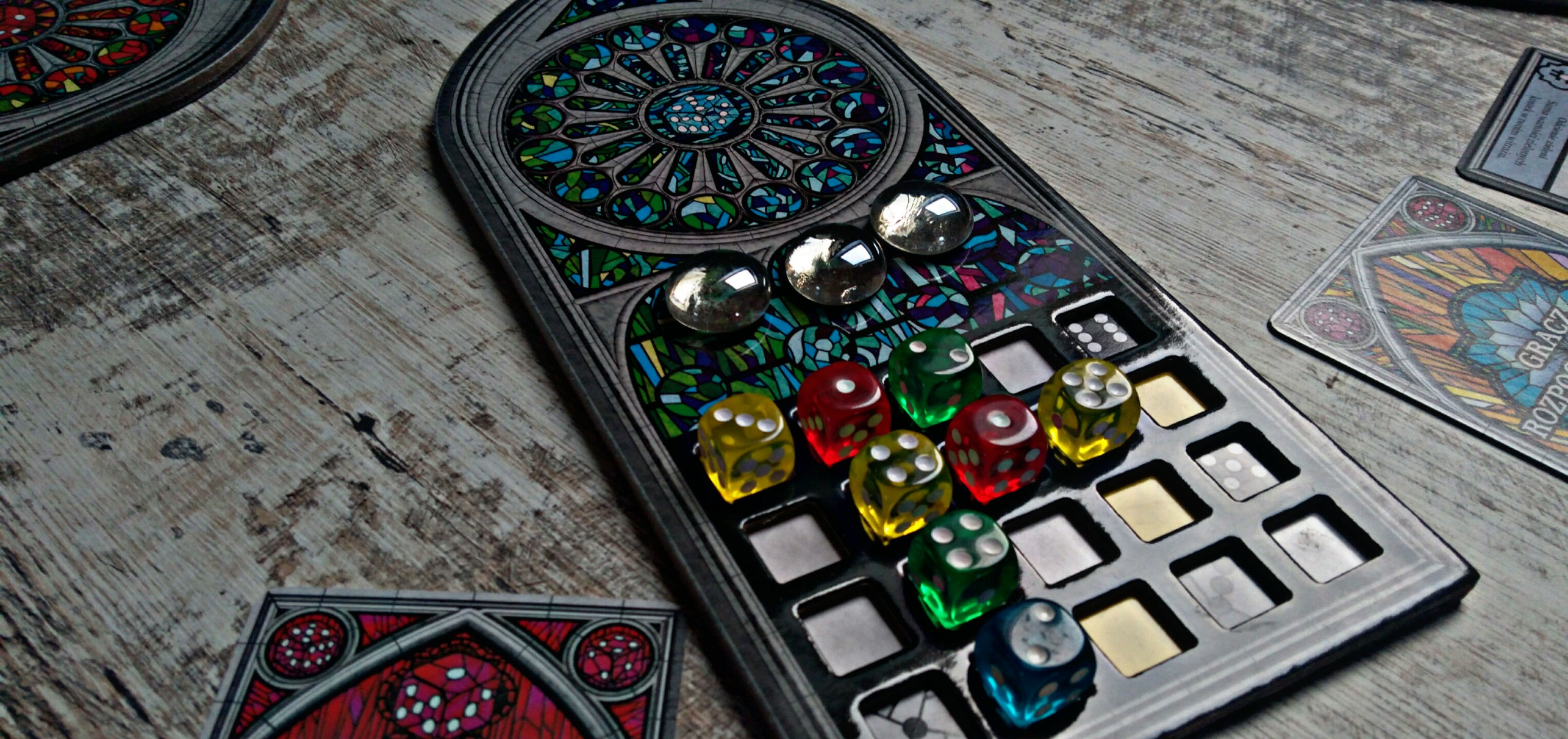 Grom kościanym – najrzadszych z wielkiej trójki (obok planszowych i karcianych) – zwykle nie poświęca się tak wiele czasu i uwagi, jak rodzajowemu rodzeństwu, gdyż element kości niezwykle często to wyłącznie mechaniczny dodatek, a nie coś, co może stworzyć pełnoprawną pozycję. Niewiele tytułów stricte kościanych przebija się więc przez wodospady nowych gier bez prądu, ale może taka perełka jak „Sagrada” co nieco w tej kwestii zmieni.