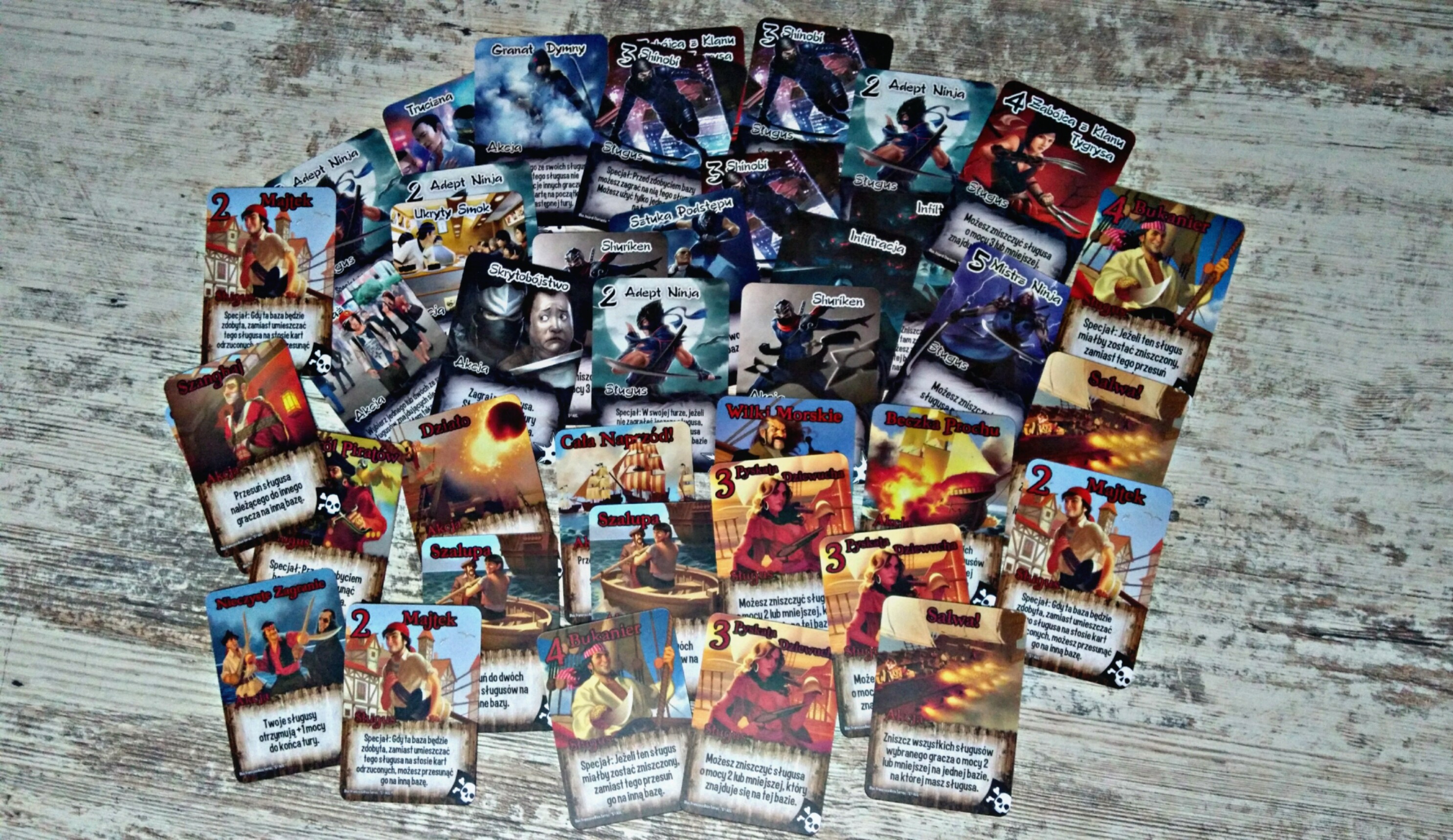 Zasiadając do „Smash up!” z pewnością możecie się spodziewać dużej dawki negatywnej interakcji, która w odpowiednim towarzystwie przerodzi się w wybuchy śmiechu i przyjacielskie przekomarzania. Któż bowiem nie chciałby zostać ninja – czarodziejem walczącym z zombie – piratami? Pamiętać należy jedynie że cała ta sfera zmiksowanych postaci pozostaje w domyśle, dysponujemy bowiem jedynie kartami z odpowiednimi grafikami i towarzyszącymi im nazwami, a cały tekst (pomijając instrukcję) jest jedynie suchymi poleceniami, które w najmniejszym stopniu nie silą się na humor i odwzorowanie klimatu. Tak więc otwarta głowa, duża dawka wyobraźni i odpowiednie nastawienie są gwarancją dobrej zabawy i niezapomnianych wrażeń, które płyną z rozgrywki w „Smash Up”.
