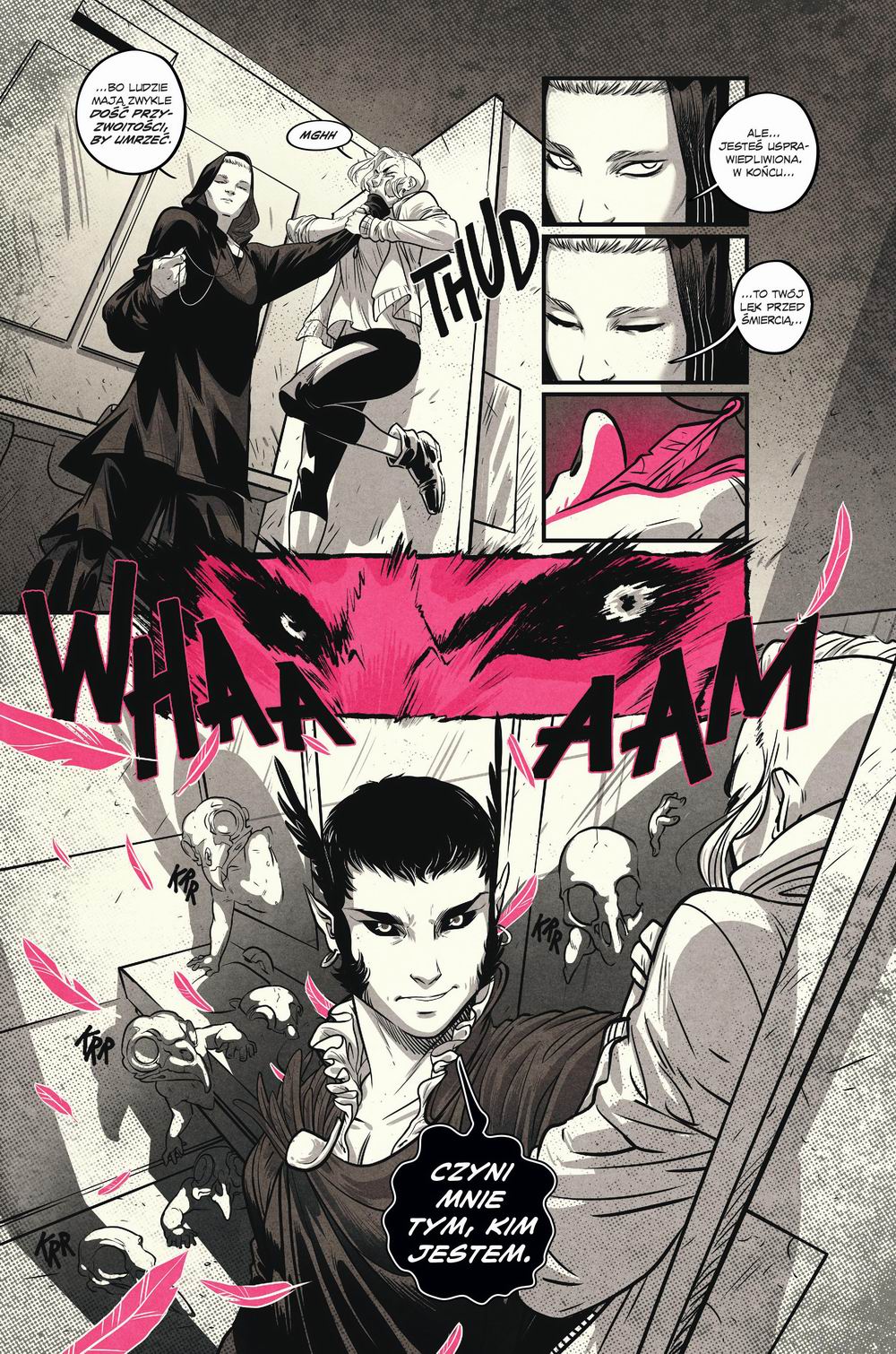 Jednak nie spodziewajcie się przewrotnych motywów, dramatycznych zwrotów fabuły czy filozoficznych wątków, otwierających drzwi czytelniczym refleksjom. To komiks dosadny, ostry, bezkompromisowy, w którym to, co czeka na wyjaśnienie wyjaśnia się, to, co musi się rozwiązać rozwiązuje, zaś bohaterowie spełniają swe role poprawnie – nie ma tu miejsca na wielkie niedopowiedzenia bądź szokującą puentę. Jest za to czysta rozrywka, spełniająca ludyczne potrzeby.