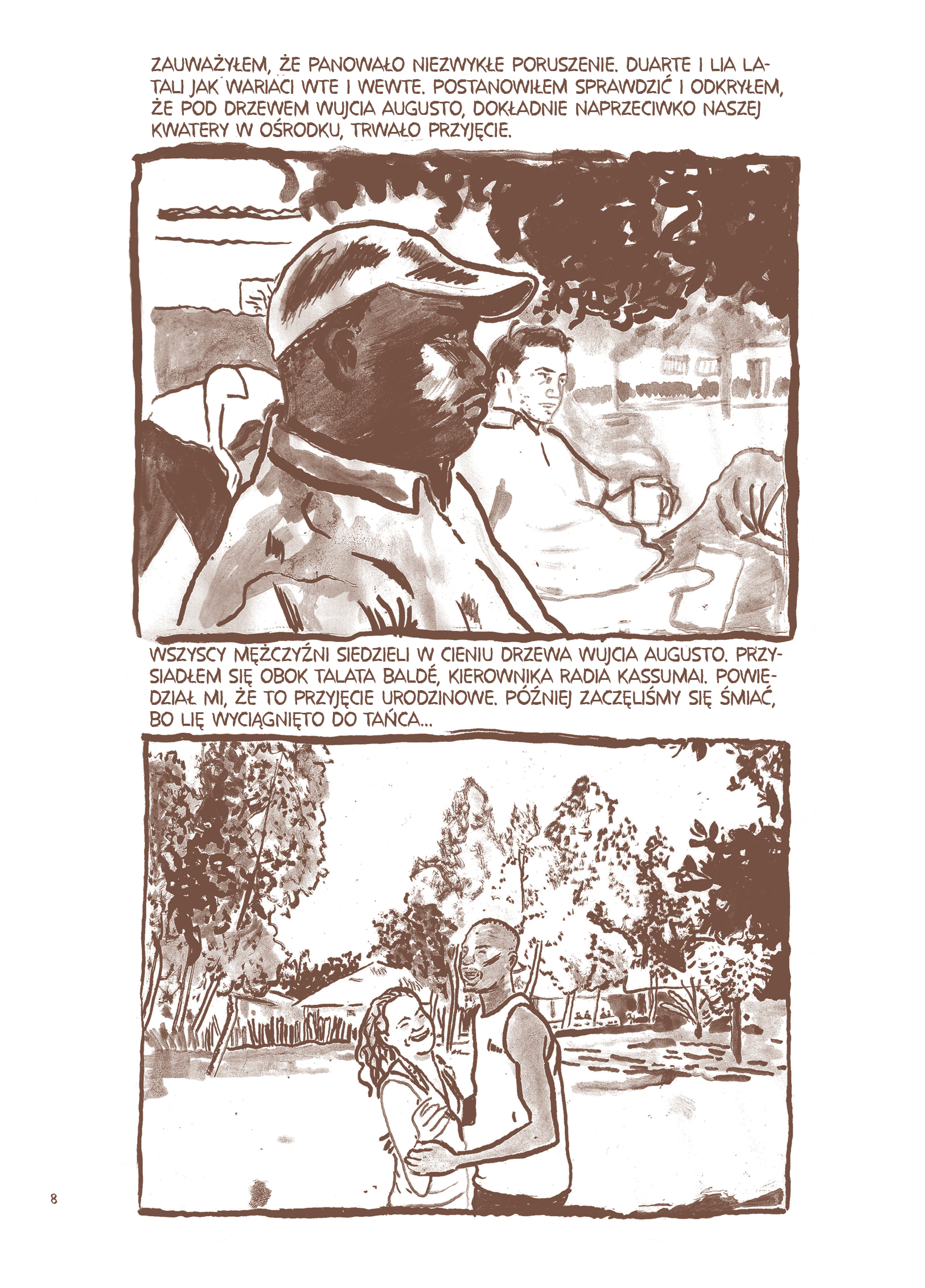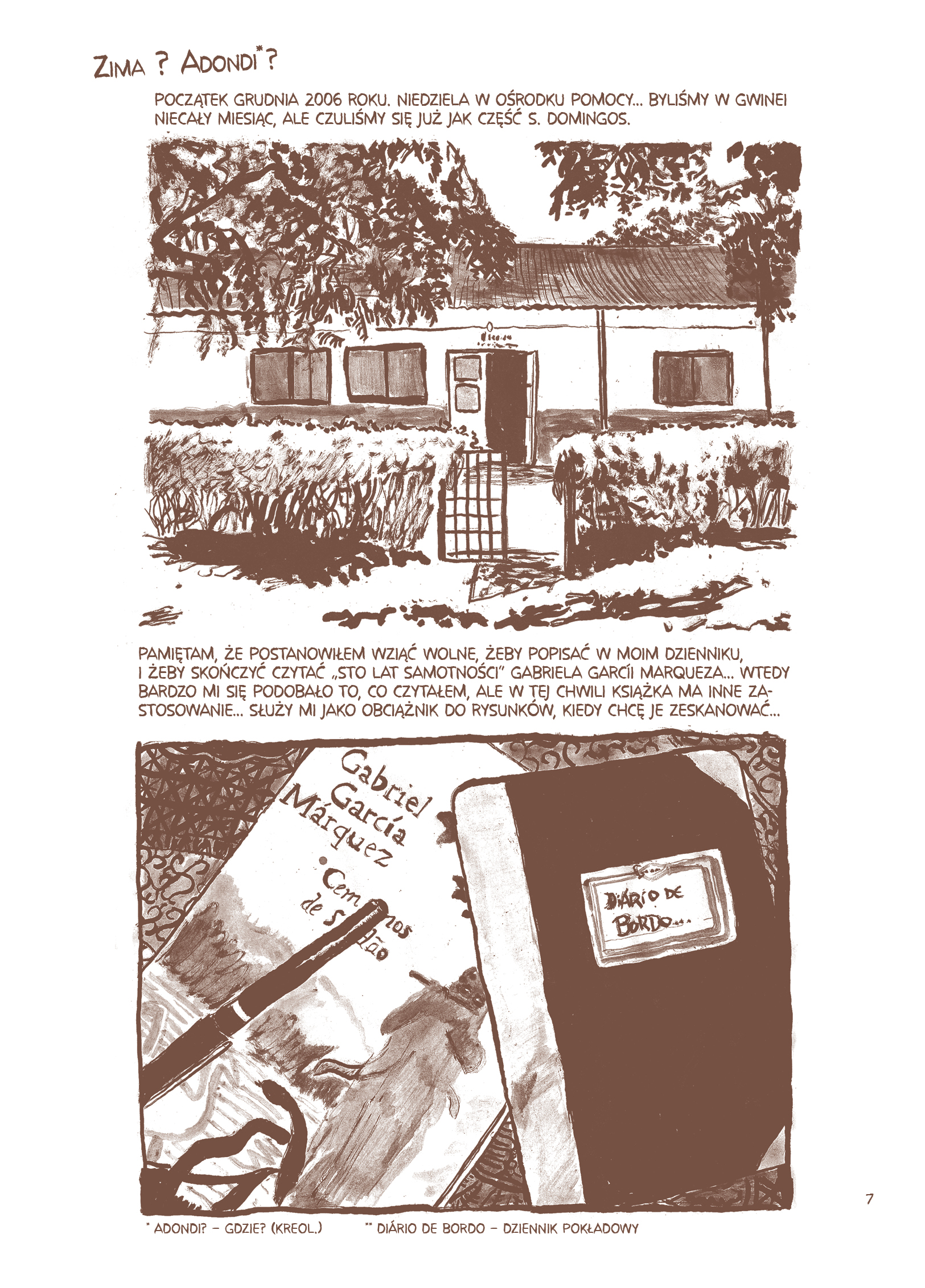 David Campos przebywał w Gwinei Bissau od listopada 2006 do maja 2007 roku w ramach projektu pomocowego dla mieszkańców São Domingos, który zrealizowano we współpracy organizacji pozarządowej Acção para o Desenvolvimento (Działanie dla Rozwoju) oraz urzędu miejskiego miasta Montijo. David podczas tego pobytu zakochał się w poznanych osobach, więc komiks, który za chwilę przeczytacie, jest nie tyle opowieścią o odbytej podróży, co wybiórczym dziennikiem przeżyć i kontaktów międzyludzkich, jakie autorowi dane było nawiązać w czasie pracy wolontariackiej, a także w czasie od niej wolnym.