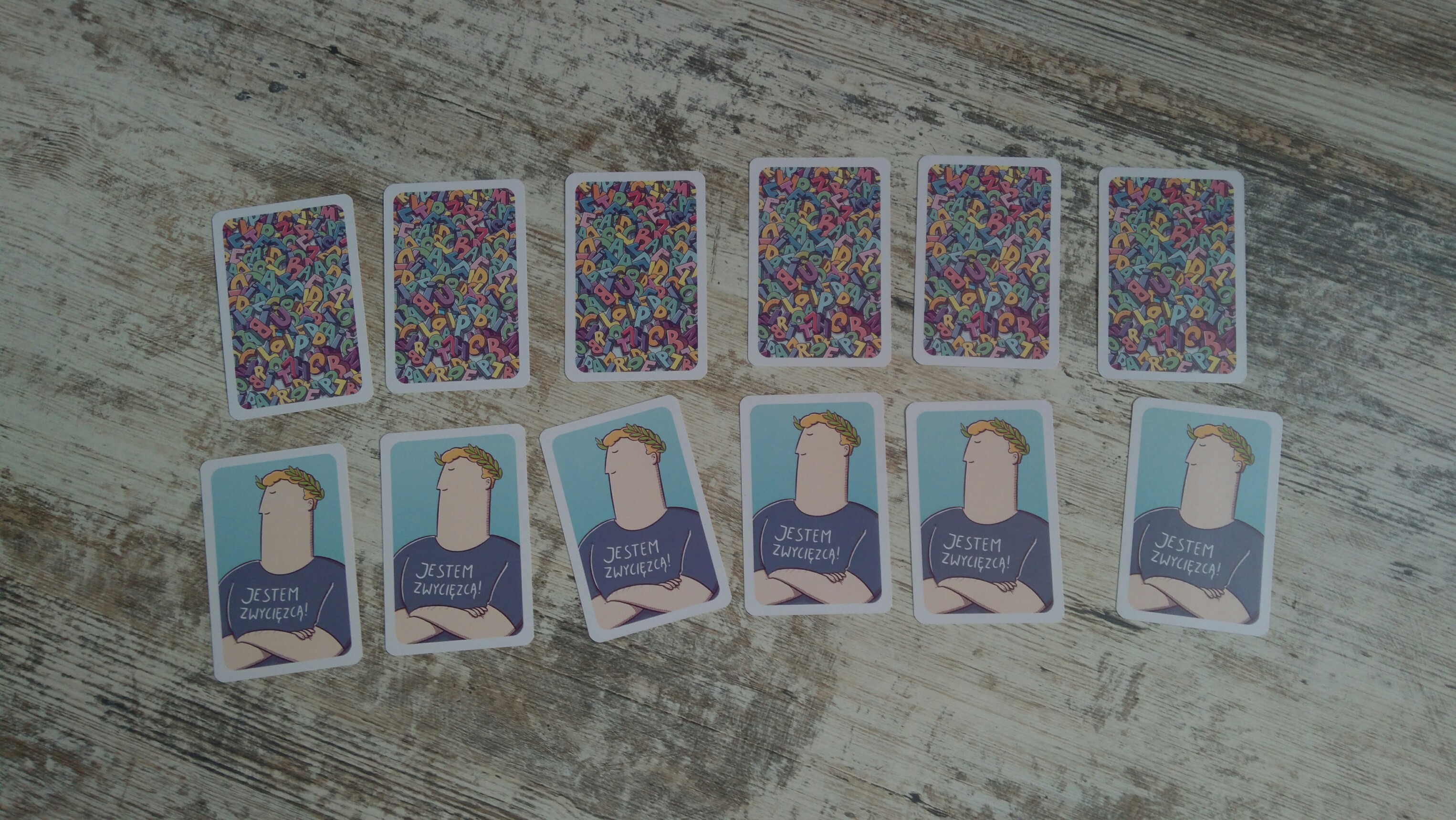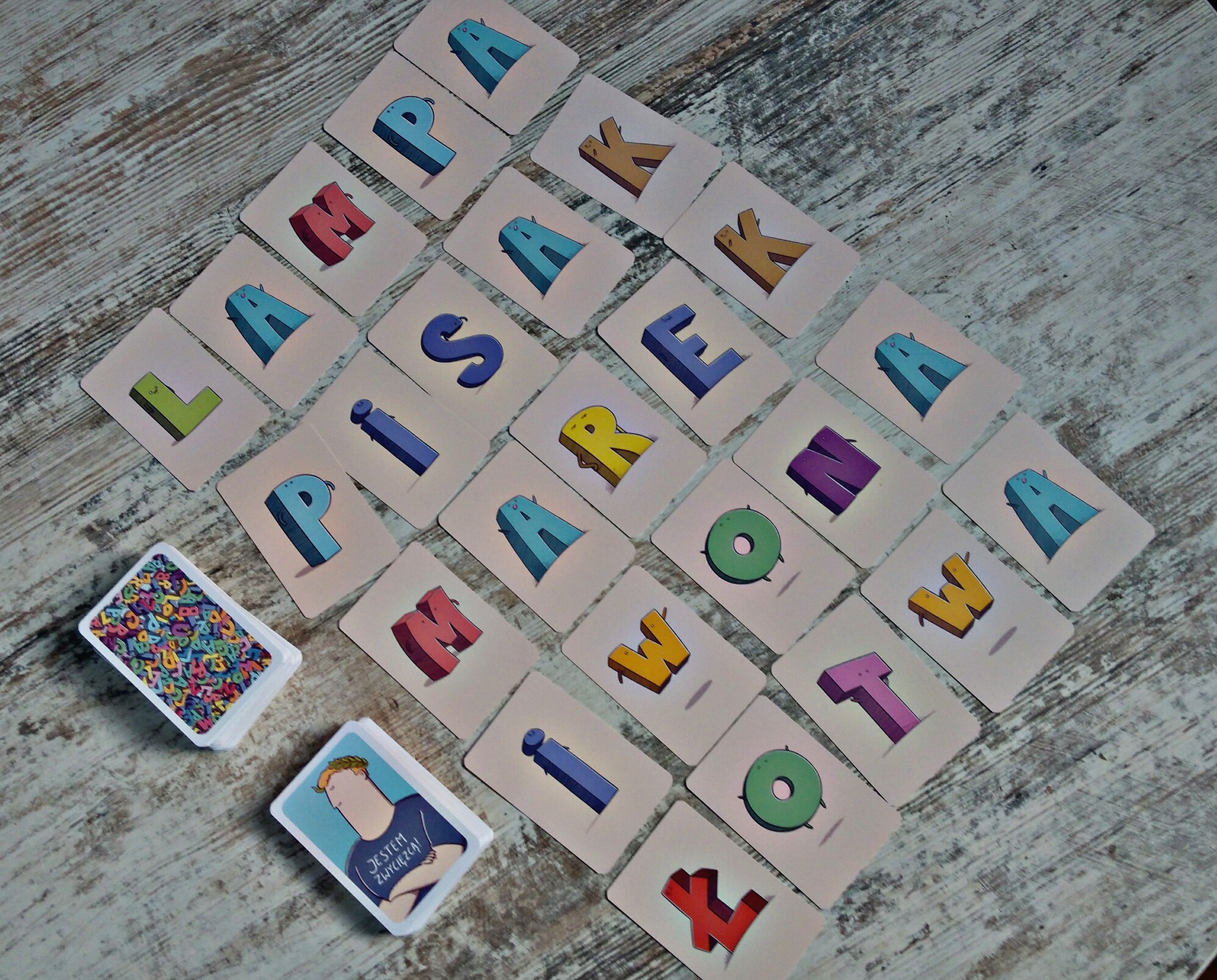 Grze Annie Whiteheada i Matta Knotta odmówić za to nie można pięknego wykonania. Opatrzone wesołymi literami karty – praca Pawła Jarońskiego – prezentują się godnie, są miłe dla oka i zostały wykonane z dobrej jakości papieru, dzięki czemu nie powinny tak szybko się niszczyć czy przecierać. Grafiki są plastyczne, nieformalne i czasem nawiązują do popkultury – skoro zabawa, to nie ma co się bać motywów komicznych (tu brawa). Poręczne pudełko to także nie takie standardowe opakowanie do przechowywania kart. Plastykowa wypraska z miejscami na dwie talie jest przeźroczysta, a pod nią, na całej dolnej, wewnętrznej części pudełka znajduje się grafika z rozsypanymi, pomieszanymi literkami – tworzy to spójny estetycznie efekt. Wykonanie więc stoi na wysokim poziomie i nie ma praktycznie żadnych wad.