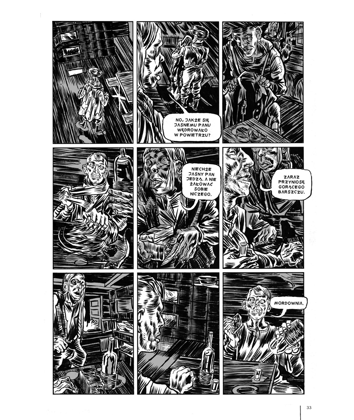 Mateusz Wiśniewski, autor scenariuszy, zachował w adaptacjach styl i strukturę prozy Grabińskiego. Nie upraszcza, nie wygładza, nie modernizuje. Zamiast tego konstruuje komiksowy labirynt, w którym słowo i obraz prowadzą czytelnika ku temu, co nieznane i obce, ale dziwnie znajome. Szalona zagroda, Czad, Smoluch, Dziedzina i Spojrzenie: każdy tytuł to nie tylko opowieść, ale inny wymiar strachu, inny sposób na pokazanie, jak kruche są granice między światem żywych a tamtym.