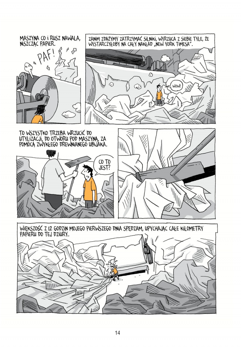 Poznawanie tego, jak Guy radzi sobie w fabryce, jak nie do końca rozumie działania niektórych maszyn, jak zaznajamia się z ich funkcjonowaniem, a następnie wdraża w coraz to nowsze aktywności i wreszcie zaczyna bardziej komunikatywnie komunikować się z współpracownikami – to coś, co zostało bardzo sprawnie oraz wiarygodnie zaprezentowane. Delisle to autor, który potrafi tak prozaiczne zajęcia przedstawić w intrygujący, nienużący i wartki sposób, choć zdecydowanie nie są to sensacyjne opowieści. To proza życia. Proza życia, która ma specyficzne okulary – i dzięki temu widzi świat w niezwykły sposób. Bo tak naprawdę to, co dzieje się w fabule to jedno, inną rzeczą jest to, w jaki zostaje to podane.