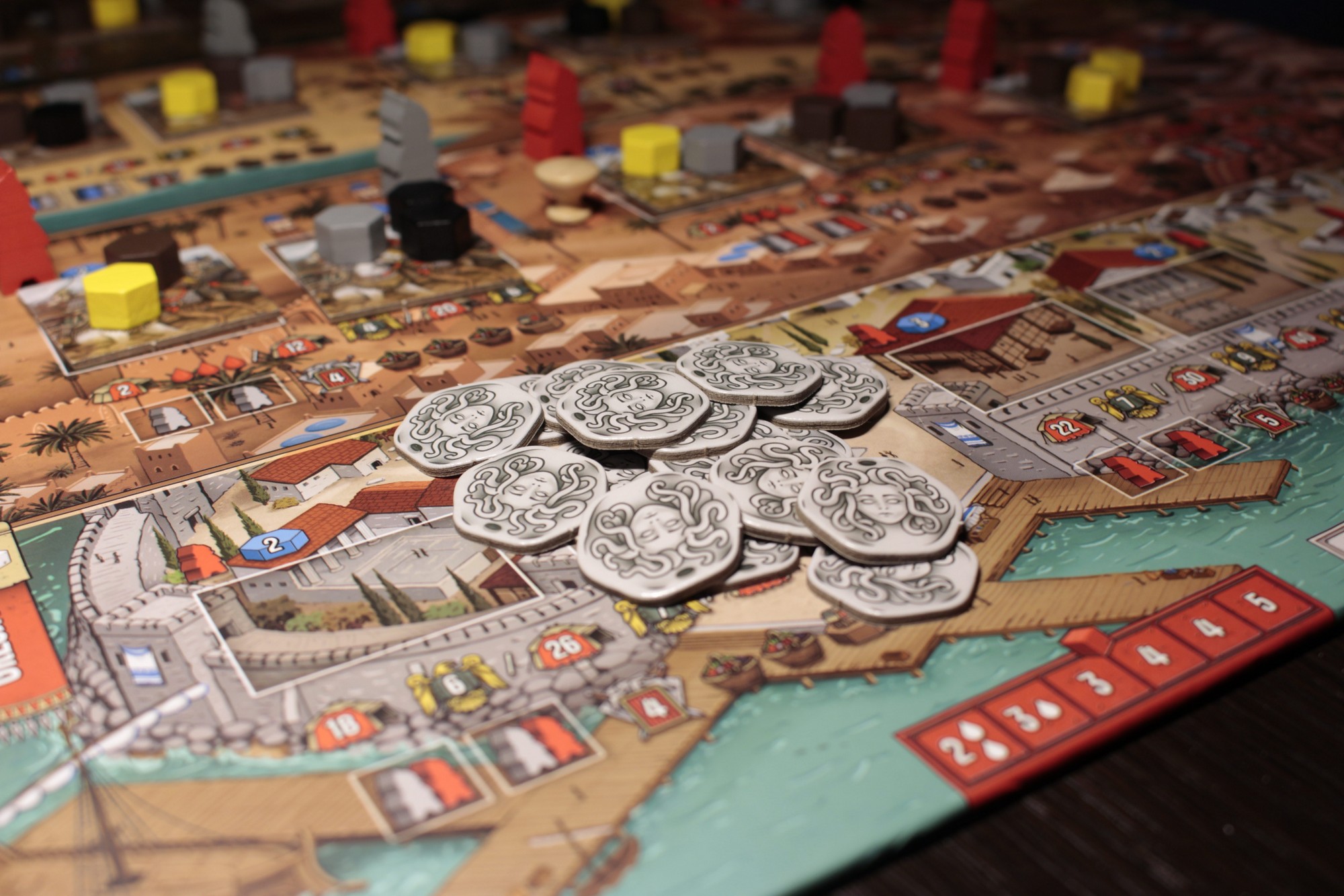 Całość spina solidne, wytrzymałe wykonanie, uszlachetnienie na komponentach, a także to, że w tym przypadku – wbrew pozornie niewielkiemu pudełku – w środku znajduje się ogrom elementów: ciekawie wykonanych, budujących tematyczny nastrój i różnorodnych. Widać, że twórca stawia na kompaktowość i dbałość o to, aby nie tylko komponenty zostały precyzyjnie wykonane, ale i w sposób intuicyjny nawiązywały do tego, co reprezentują. W tym miejscu jak zwykle nie zawodzą symbole, które gracz szybko przyswaja, jak również kształt i wygląd drewnianych znaczników.