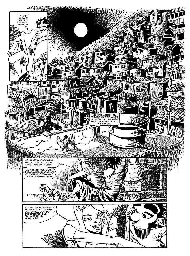 Wrażenie, że to prosta historia z sensacyjną narracją pęka jak bańka mydlana już po kilku stronach – dzieło André Diniza i Laudo Ferreira ma strukturę wielowarstwową, eksploruje niezwykle trudne, odległe dla nas tematy i zarysowuje cokolwiek barwne, ale przestępcze tło obyczajowe brazylijskiej faweli. Poprzez w miarę prostolinijną fabułę – rzadko zbaczającą, aby przyjrzeć się pobocznym wydarzeniom – autorzy starają się nie tylko wiernie odmalować portret środowiska, ale też ukazać, że system wartości (w tym przypadku szczególnie gangów) został zdeterminowany przez kulturę, realia i szanse. Ich styl życia to wymóg sytuacji, wybór o wiele korzystniejszych, choć nie do końca właściwy moralnie – z tym, że dla wielu to jedyna droga, aby wyrwać się z ubóstwa i zyskać awans społeczny, a alternatywy są niestety bardzo zniechęcające.