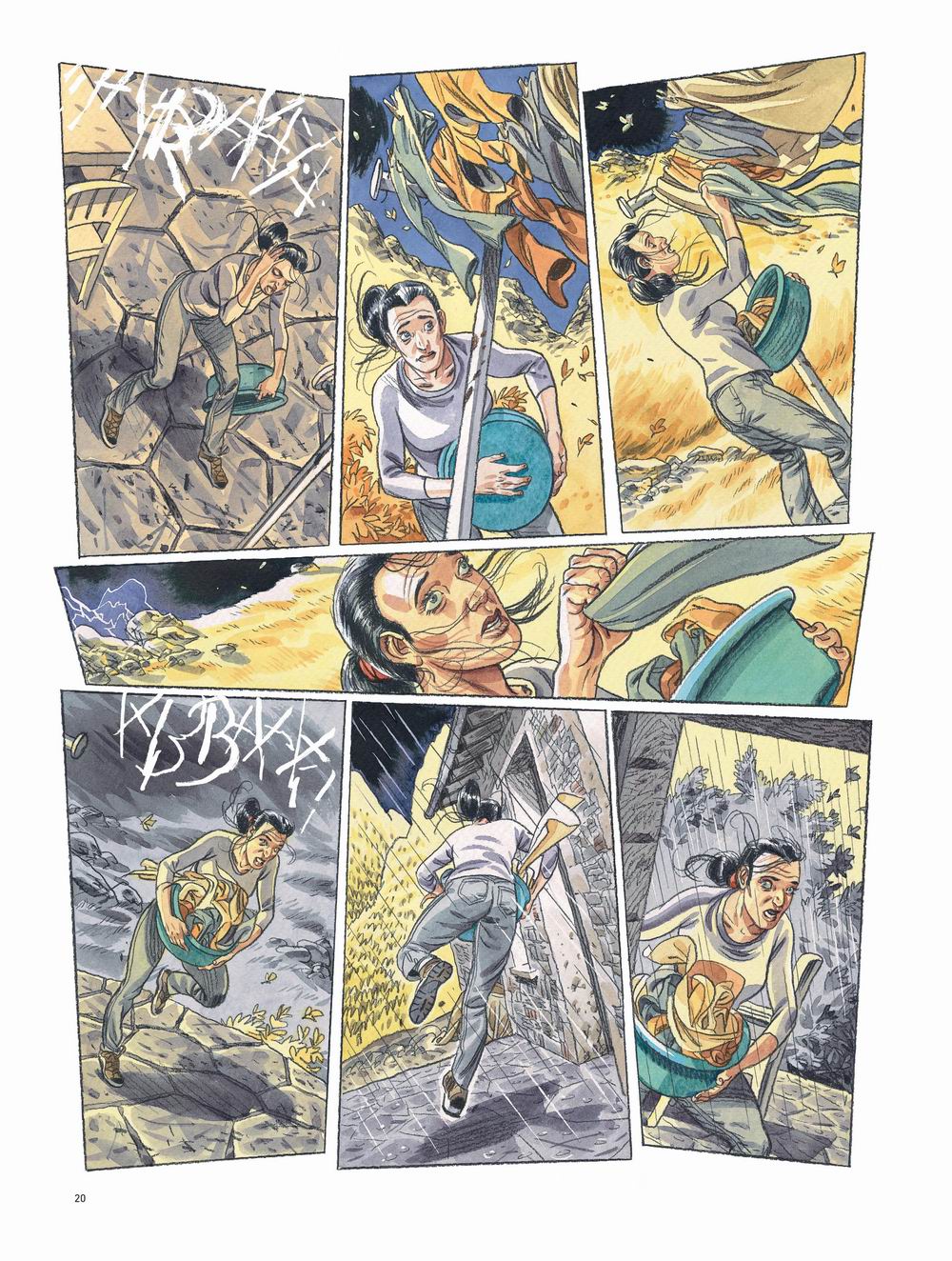 Graficznie nie mam większych zastrzeżeń, „Reszta świata” wygląda pięknie w pastelowych barwach. Gdzie trzeba jest kolorowo, choć zwykle barwy są sprane, wokół dominują odcienie szarości – i jest to umotywowane fizycznie, padające światło jest… „uboższe”. Niemniej autor ma talent, potrafi oddać rzeczy plastycznie, zna się na proporcjach i umie się nimi odpowiednie bawić, a przy tym w jego stylu widać wyraźny wpływ frankońskiej szkoły komiksu.