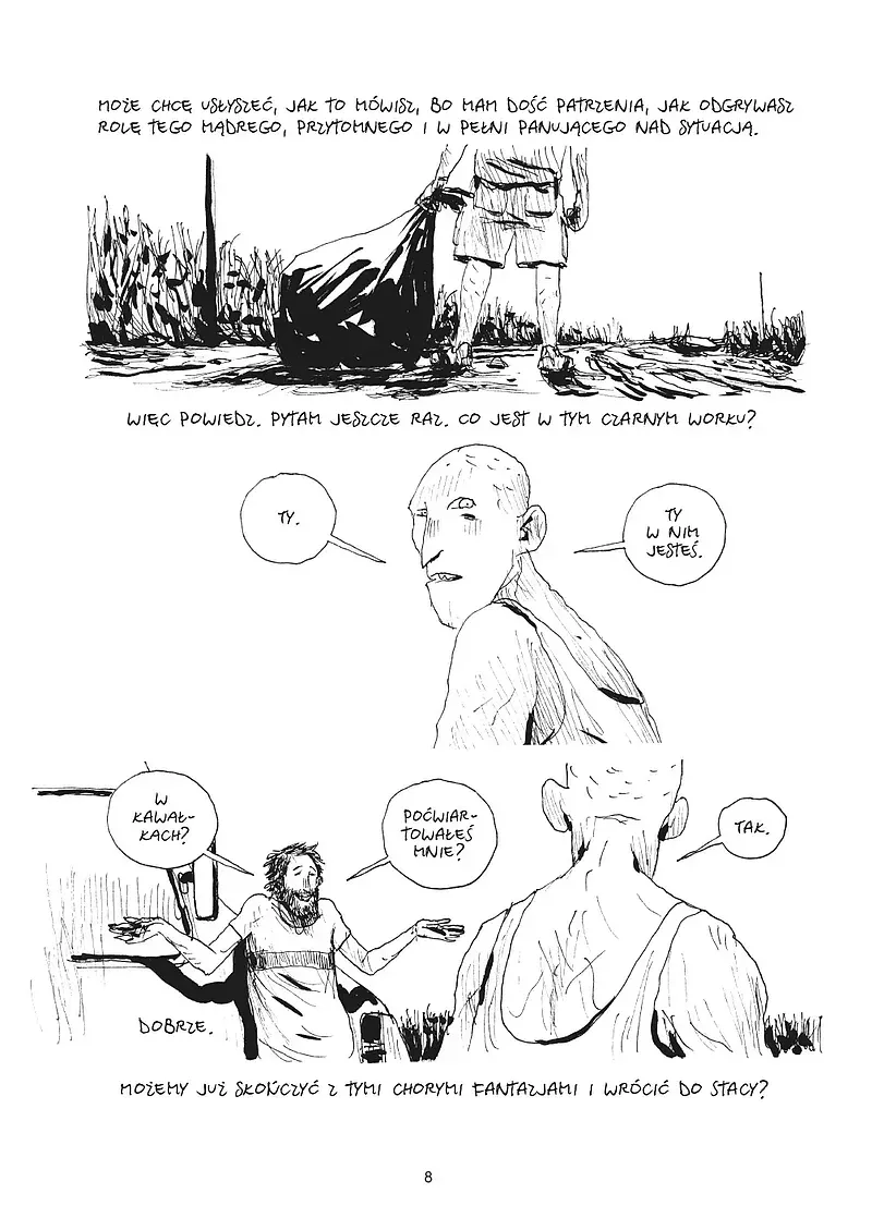 Ale Stacy nie jest i nie próbuje być tekstem programowym. To komiks pisany w afekcie, dzieło nieprzetrawione, pełne zgrzytów, niedopowiedzeń i brutalnych skrótów myślowych. I choć jego forma bywa momentami nieznośna – narracyjnie przeciągnięta, graficznie monotonna – to siła emocjonalna tej opowieści jest trudna do zignorowania. Gipi nie próbuje nas przekonać. On krzyczy z wnętrza zranionego ego.
