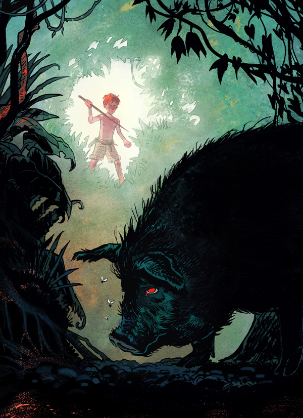 I kiedy nadchodzi scena z głową świni, tytułowym Władcą much – dzieje się coś niebywałego. Groteska i symbolika Goldinga stają się fizyczne, plastyczne, nie do zniesienia, i to nie przez przemoc, ale przez sposób, w jaki komiksowy obraz oddaje przerażającą halucynację Simona. Oczy świni patrzą nie tylko na chłopca – patrzą na czytelnika.