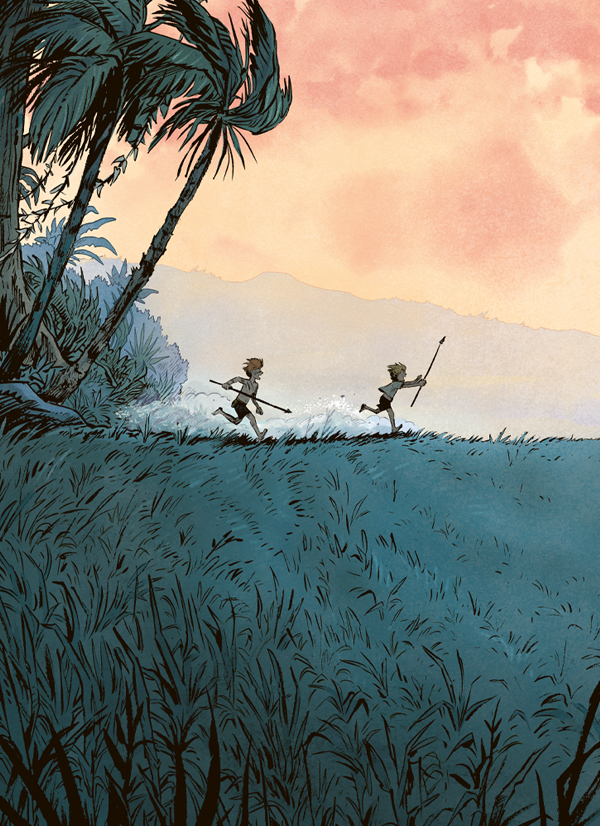 Ralph, Piggy, Jack, Simon – wszyscy są tu bardziej ludzcy niż w powieści. To paradoksalne, ale kreska de Jongh, miejscami przypominająca ilustracje z książek dla dzieci, właśnie przez to jeszcze mocniej kontrastuje z tym, co się dzieje.